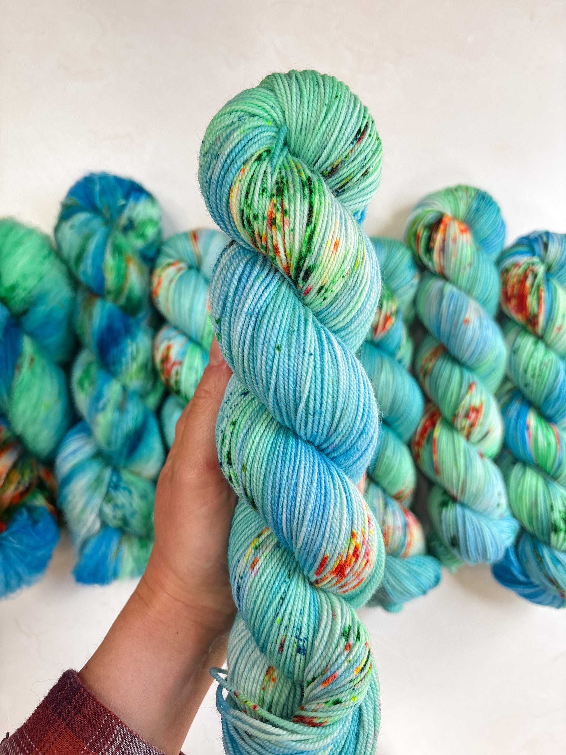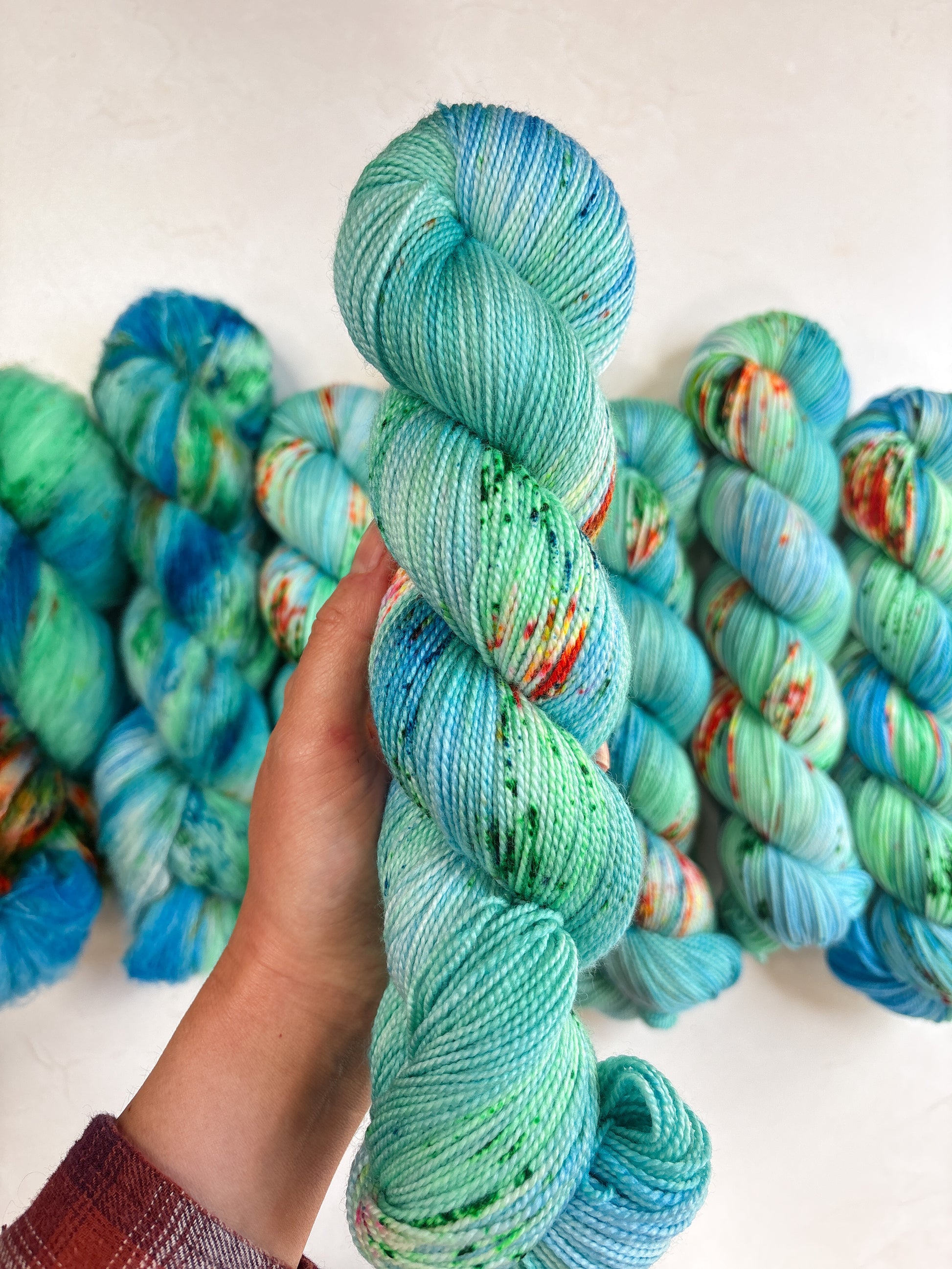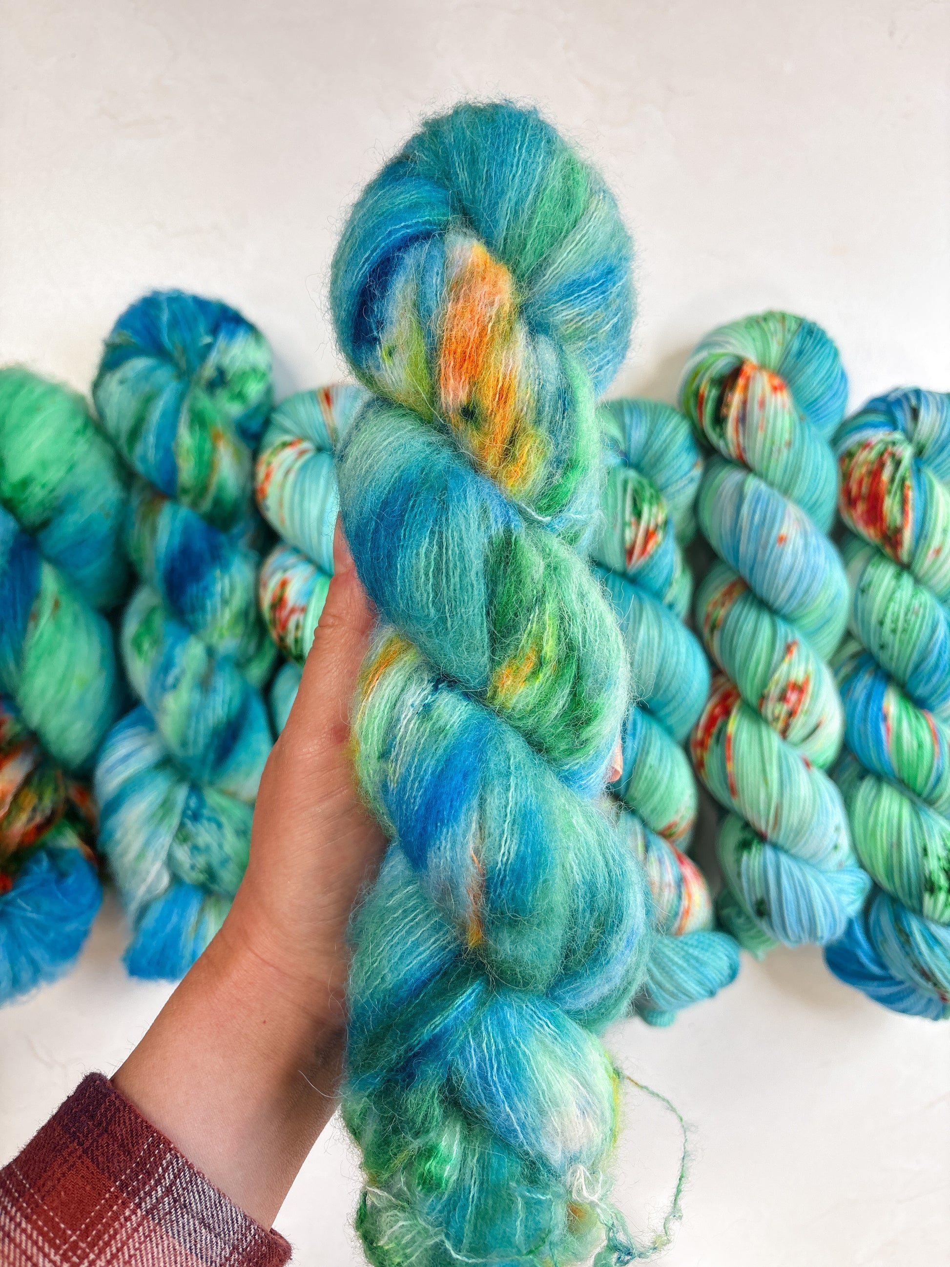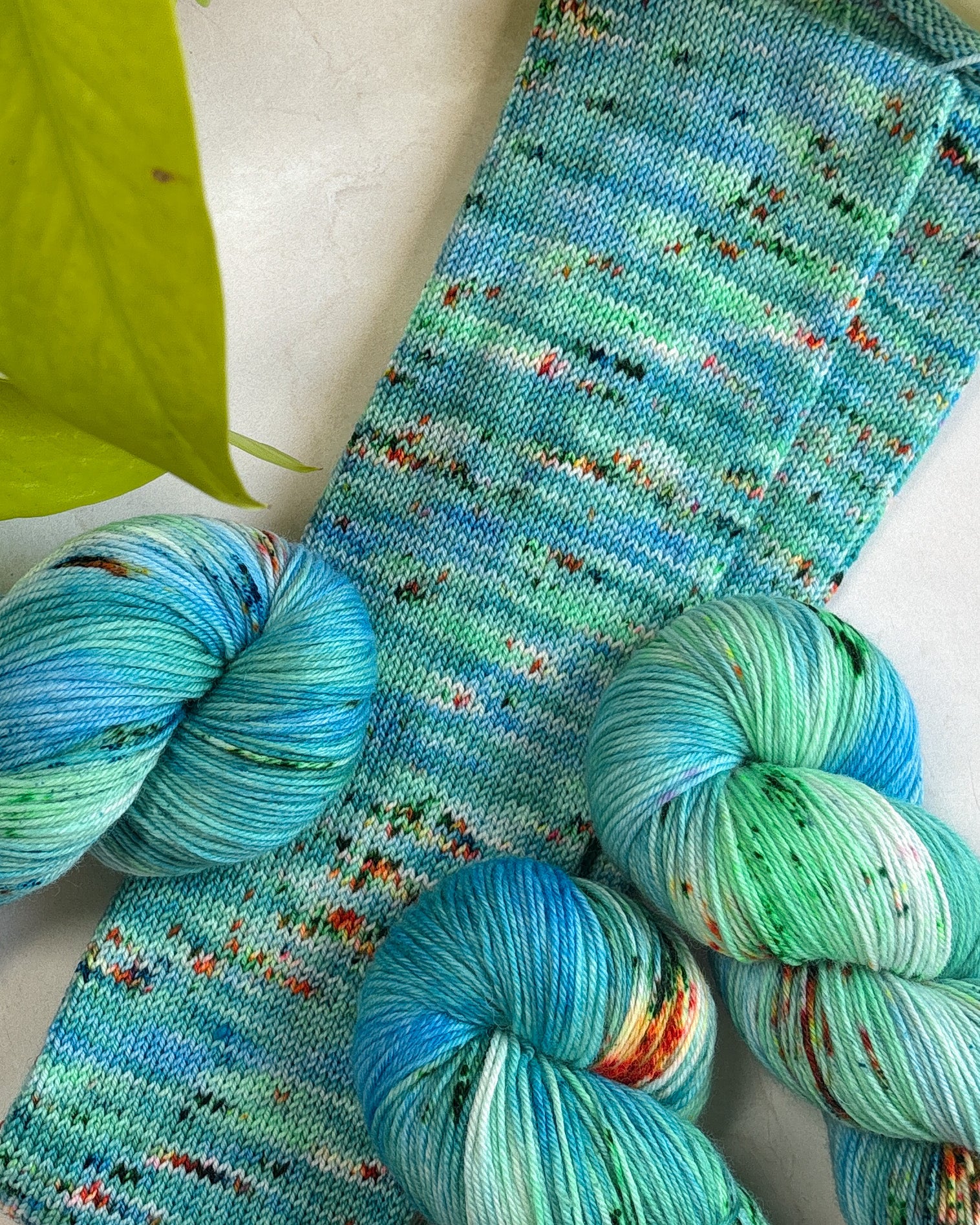 Due to the nature of hand-dyed, speckled yarn and fiber, each item may differ slightly both within and between dyelots. Alternating skeins every couple of rows is recommended when working large projects with multiple skeins of the same colorway. I do my best to capture the true color of the yarn in natural lighting conditions, however colors may vary due to differences in lighting and between screens.