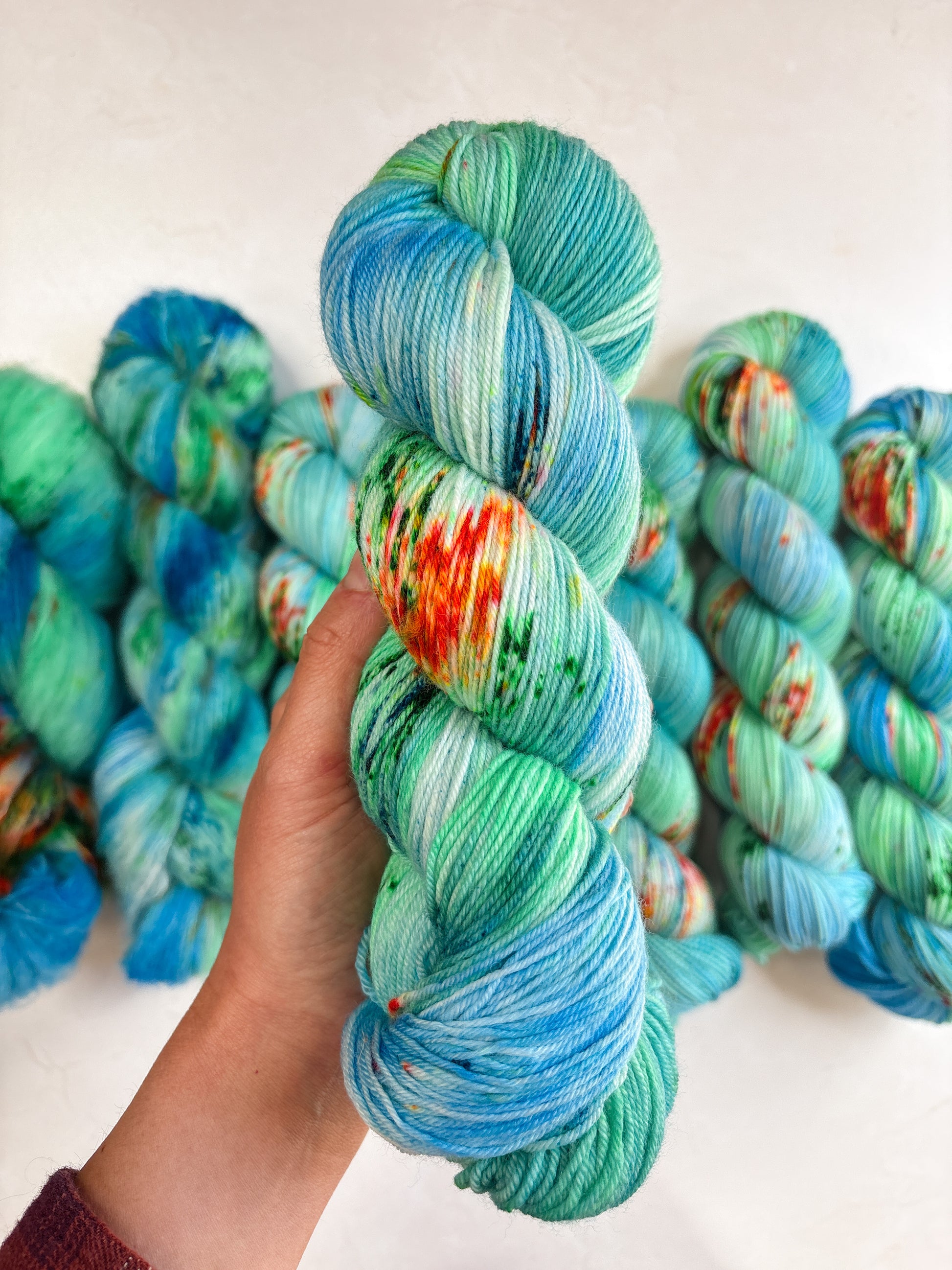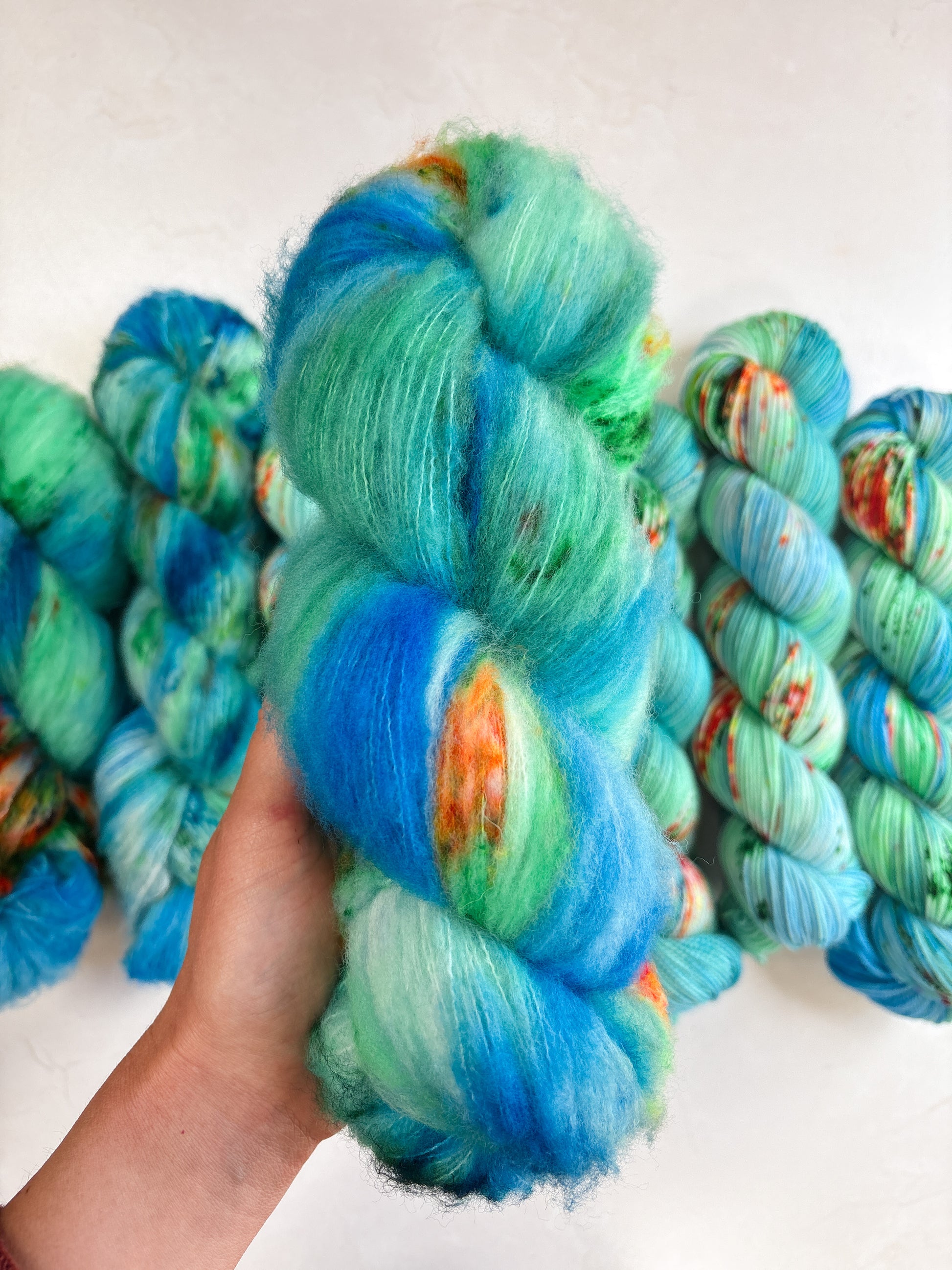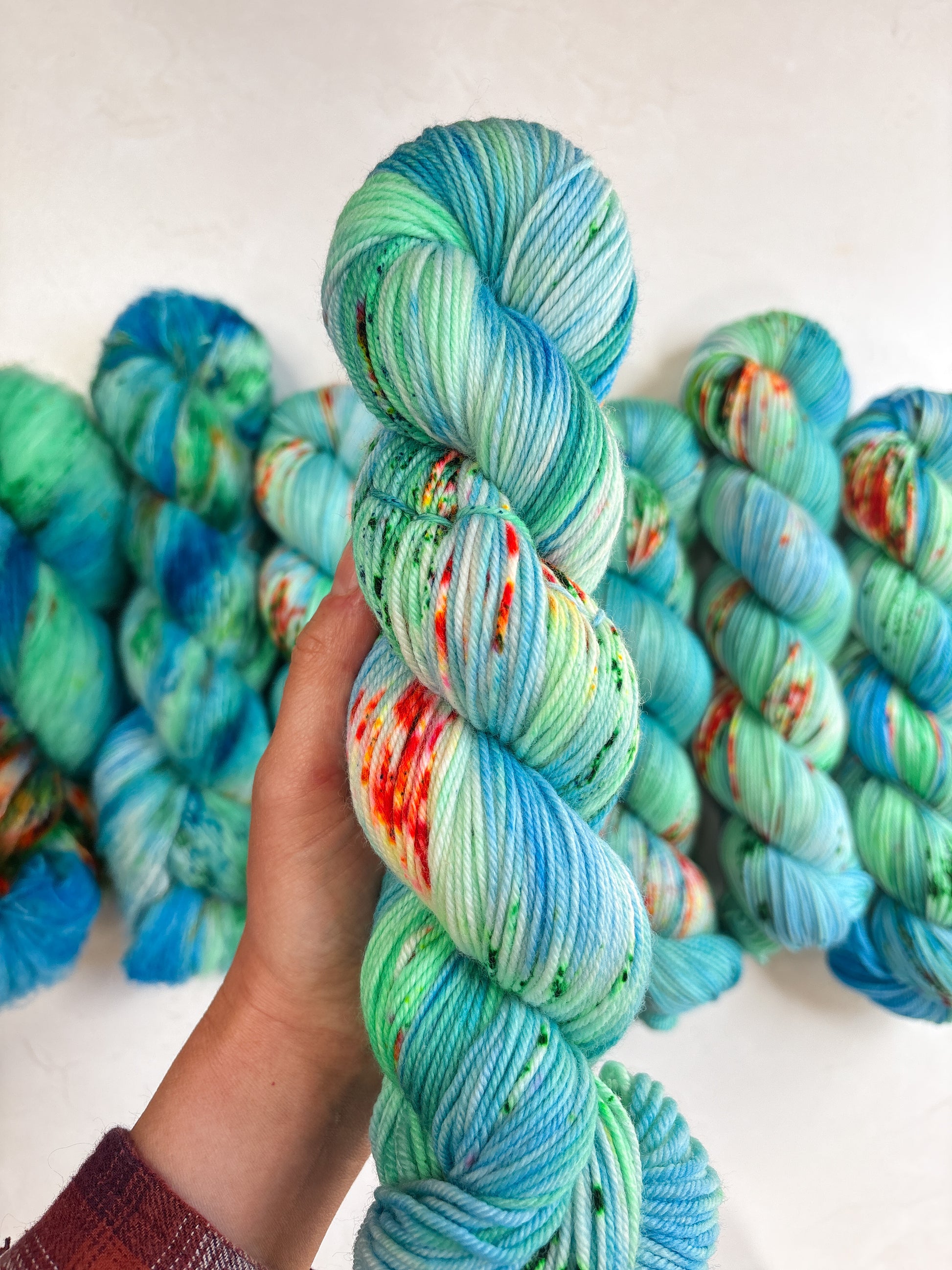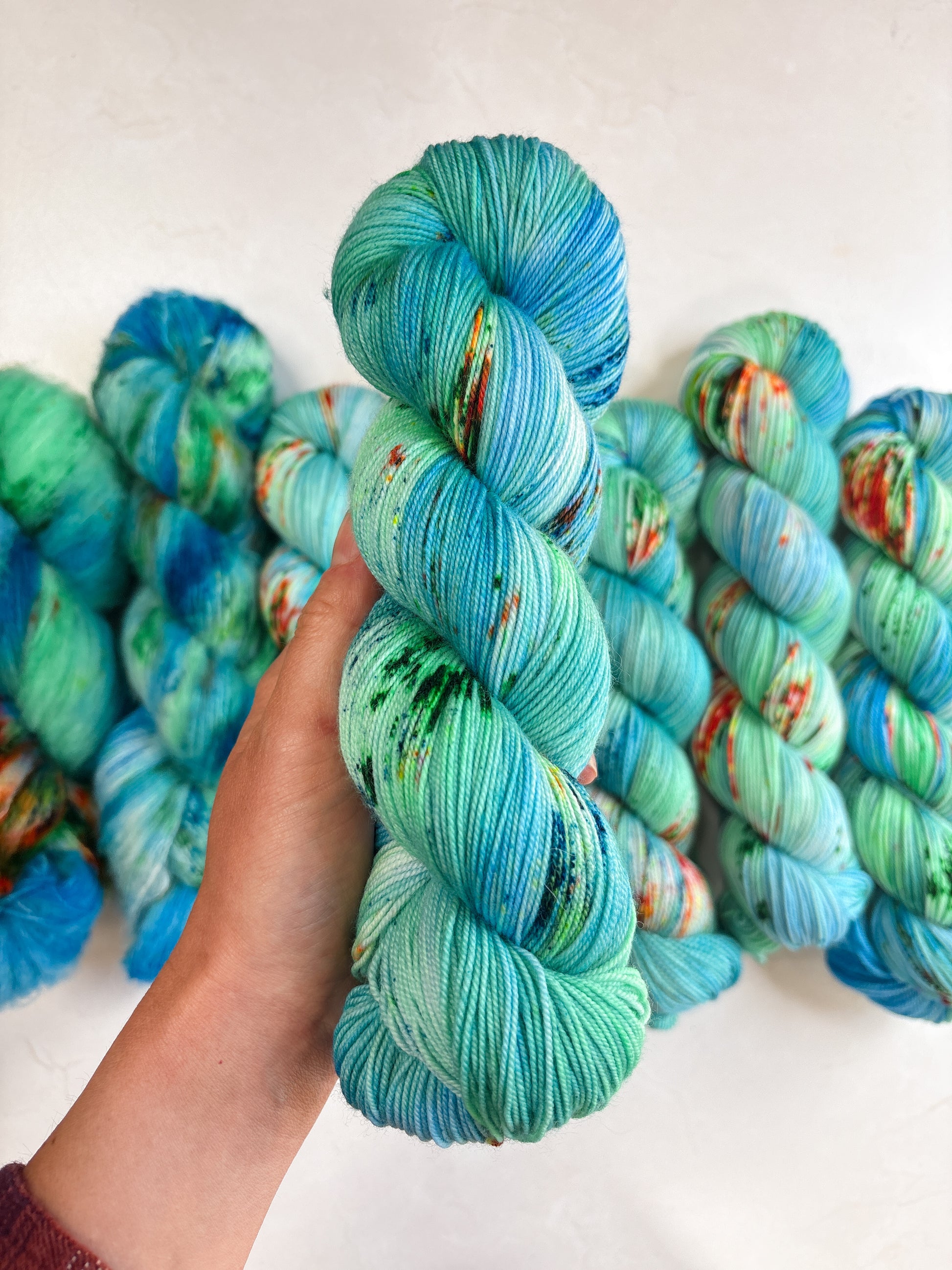 Due to the nature of hand-dyed, speckled yarn and fiber, each item may differ slightly both within and between dyelots. Alternating skeins every couple of rows is recommended when working large projects with multiple skeins of the same colorway. I do my best to capture the true color of the yarn in natural lighting conditions, however colors may vary due to differences in lighting and between screens.