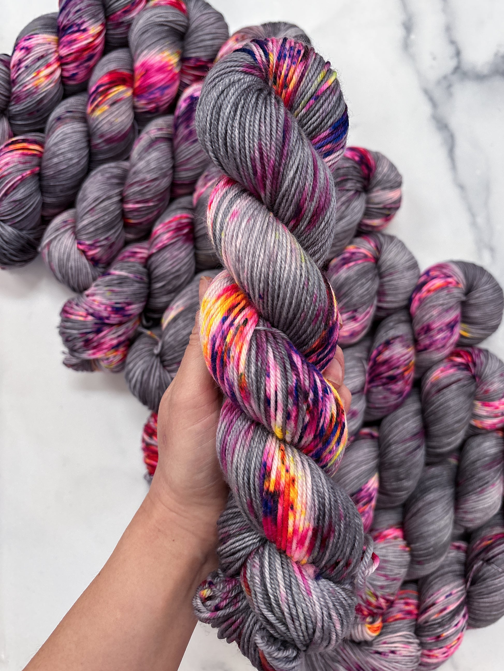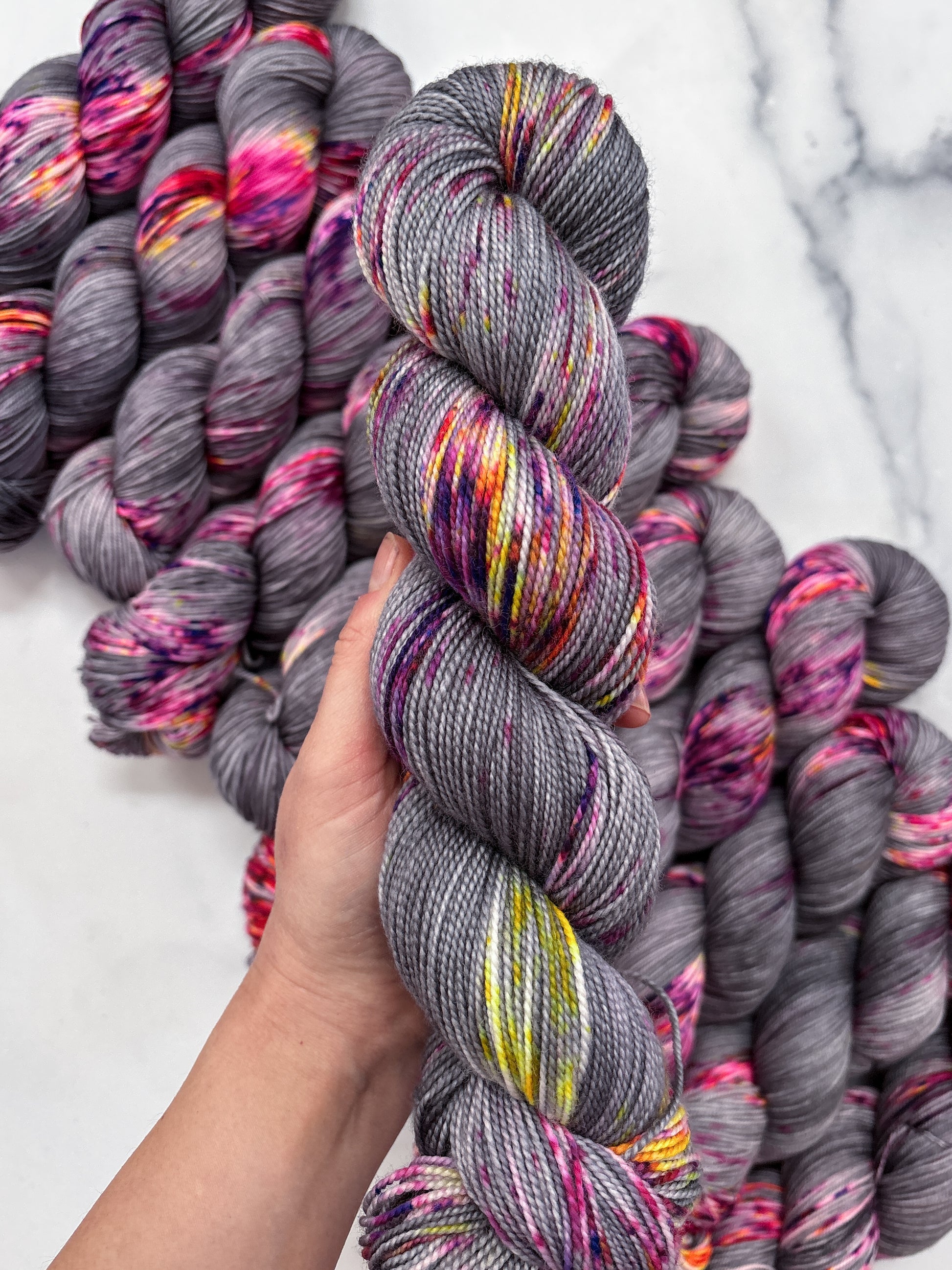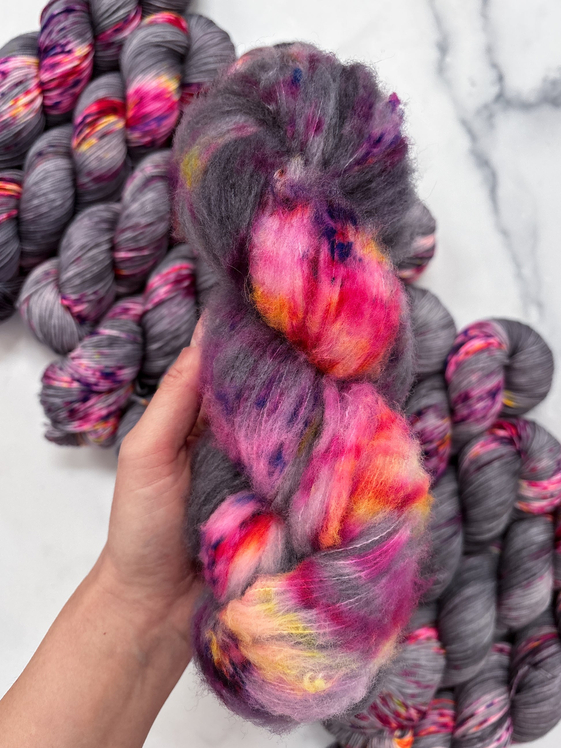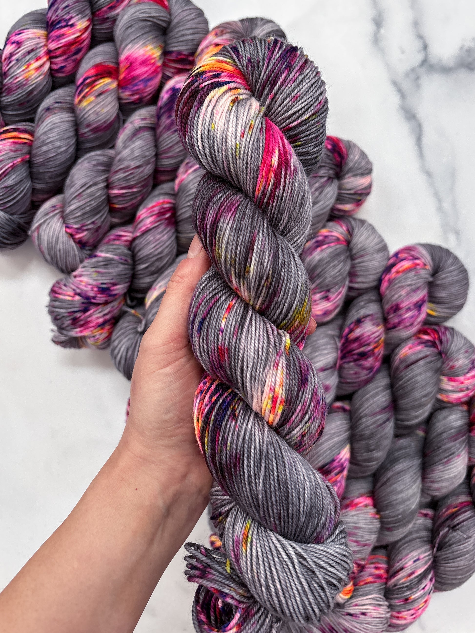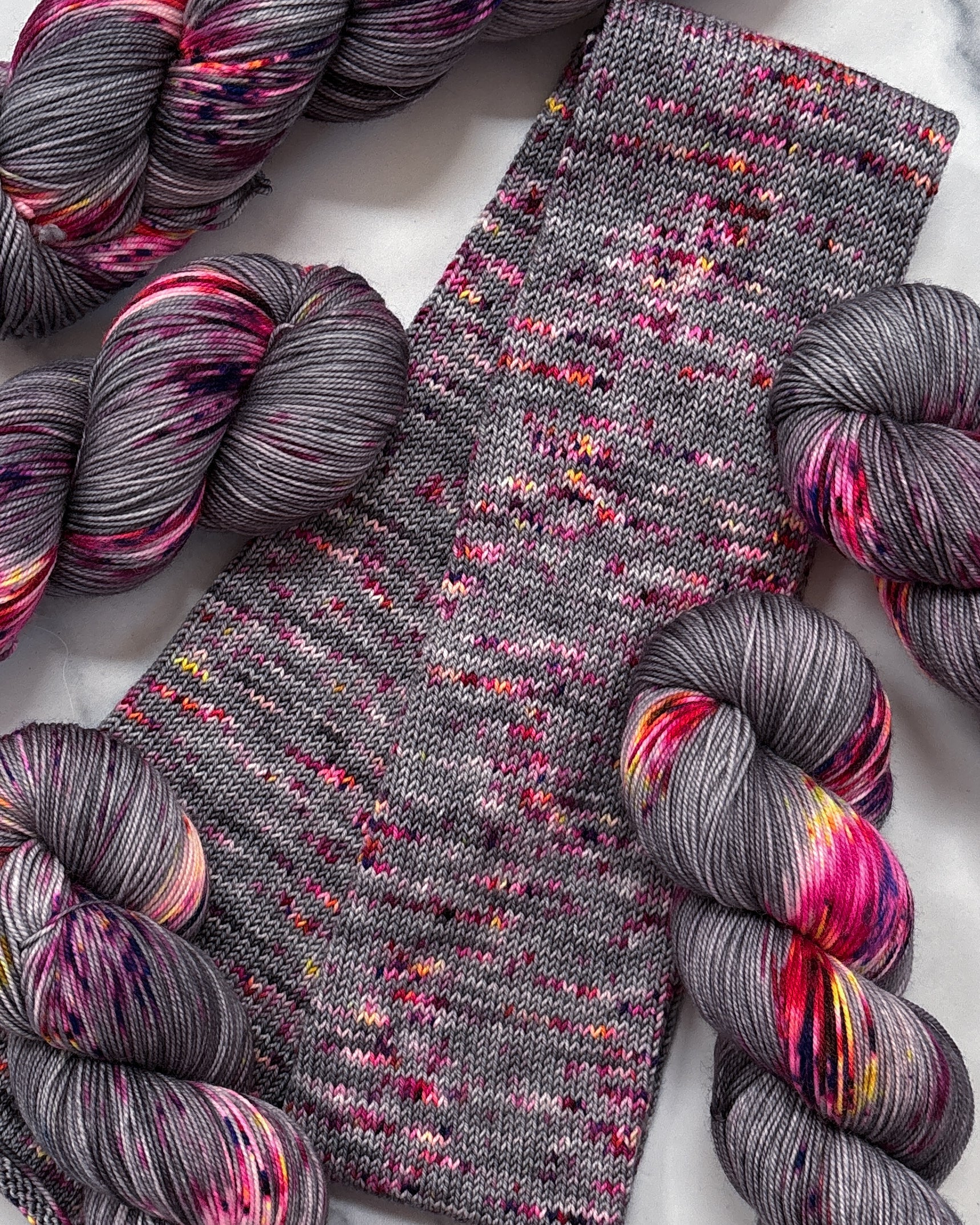 Due to the nature of hand-dyed, speckled yarn and fiber, each item may differ slightly both within and between dyelots. Alternating skeins every couple of rows is recommended when working large projects with multiple skeins of the same colorway. I do my best to capture the true color of the yarn in natural lighting conditions, however colors may vary due to differences in lighting and between screens.