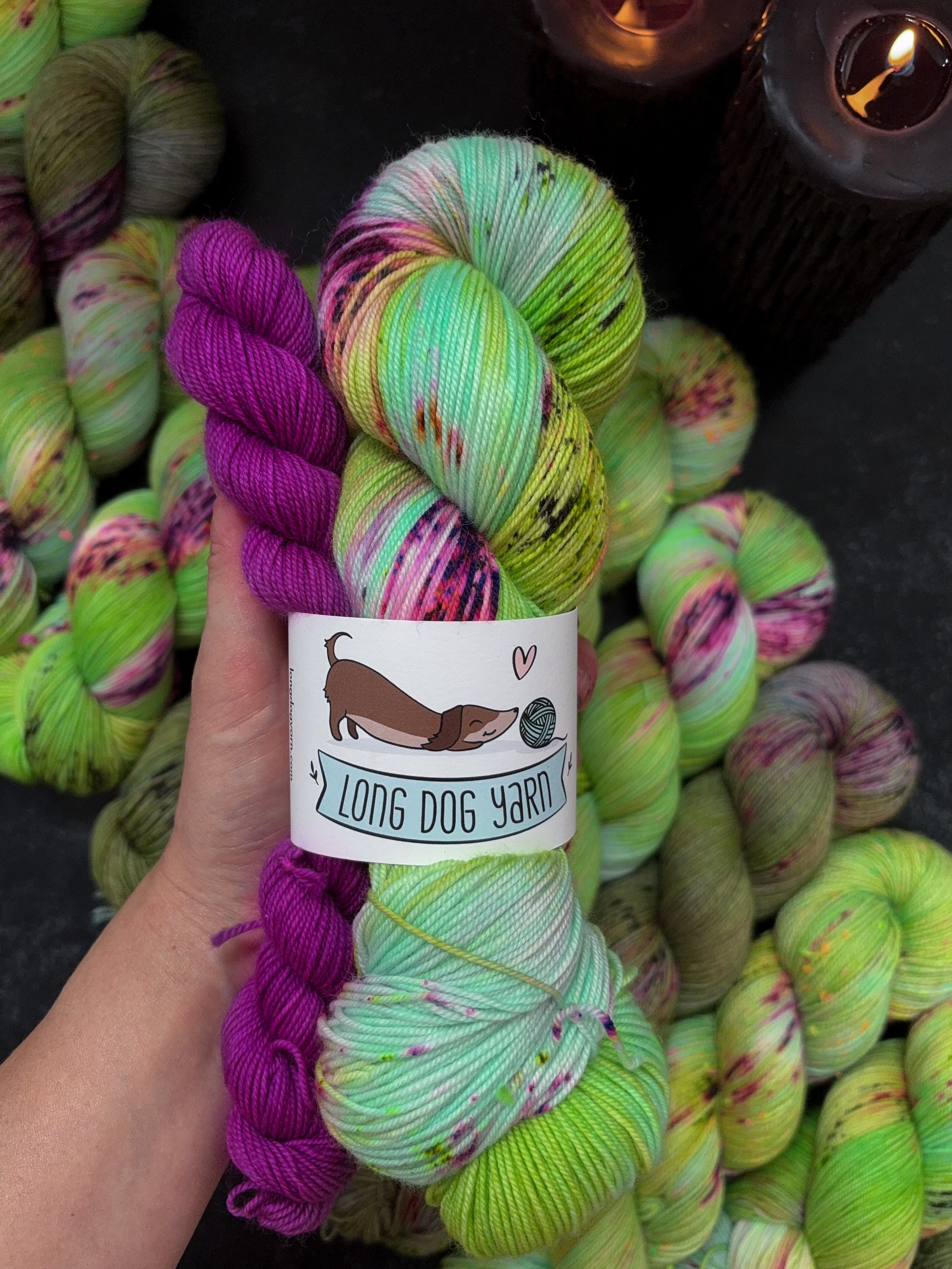 Sock sets included one full (100g) skein of Dr. Facilier and Friends on the Other Side mini skein (20g).