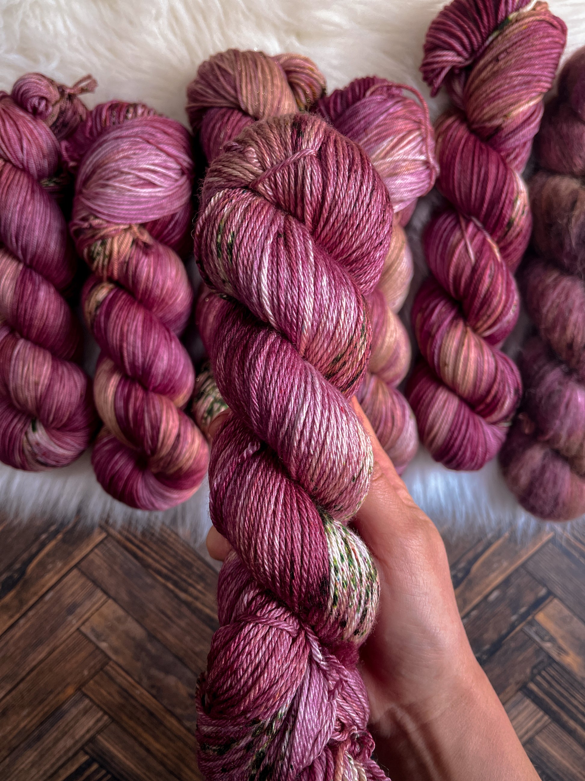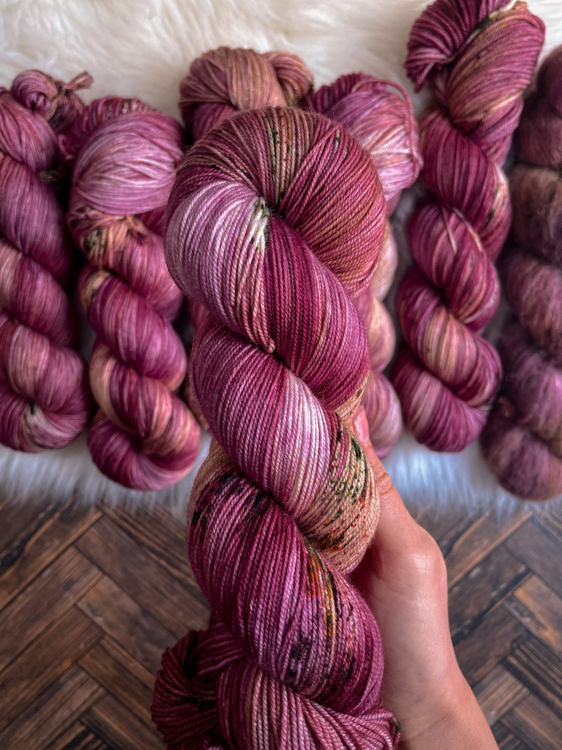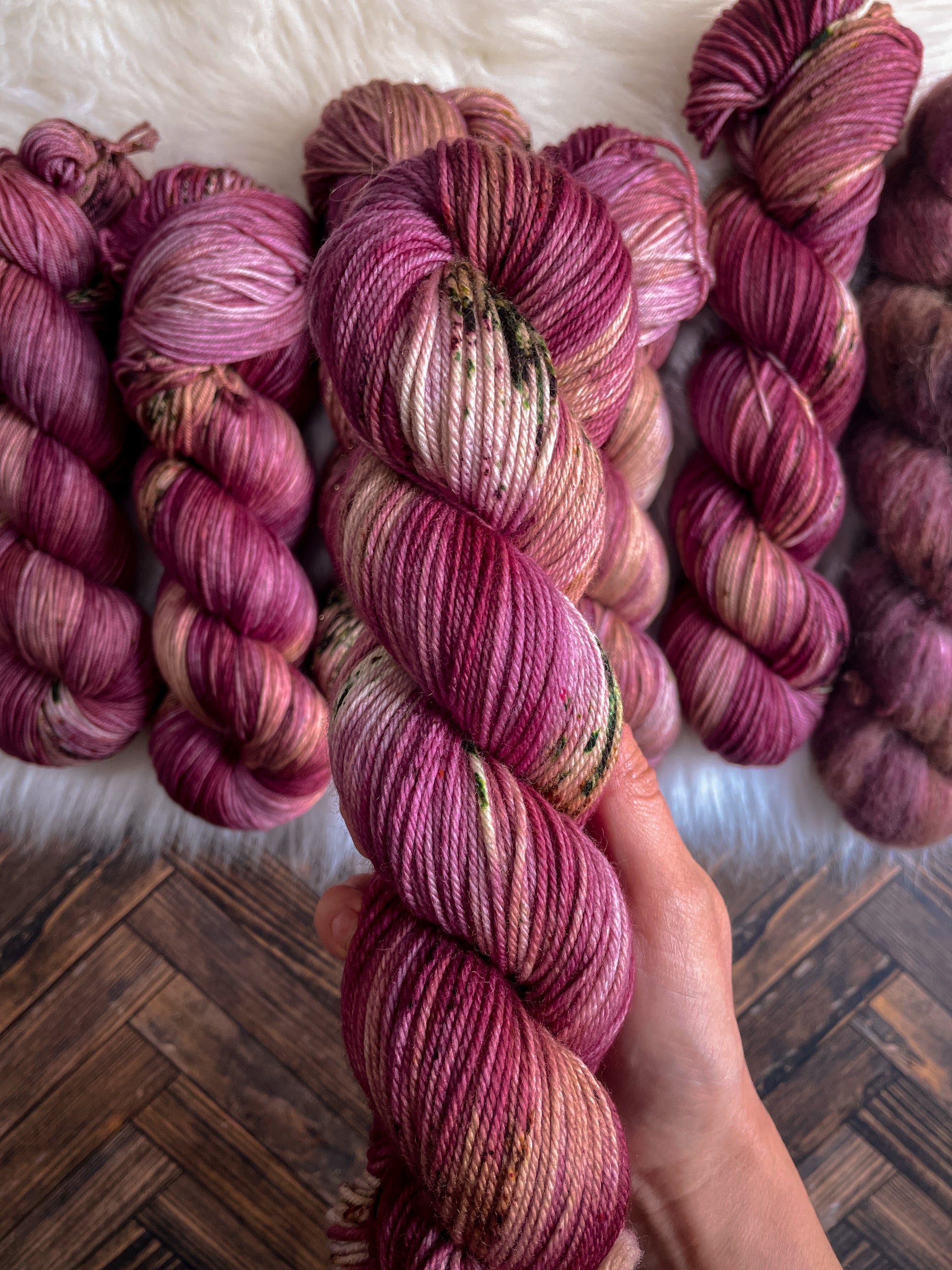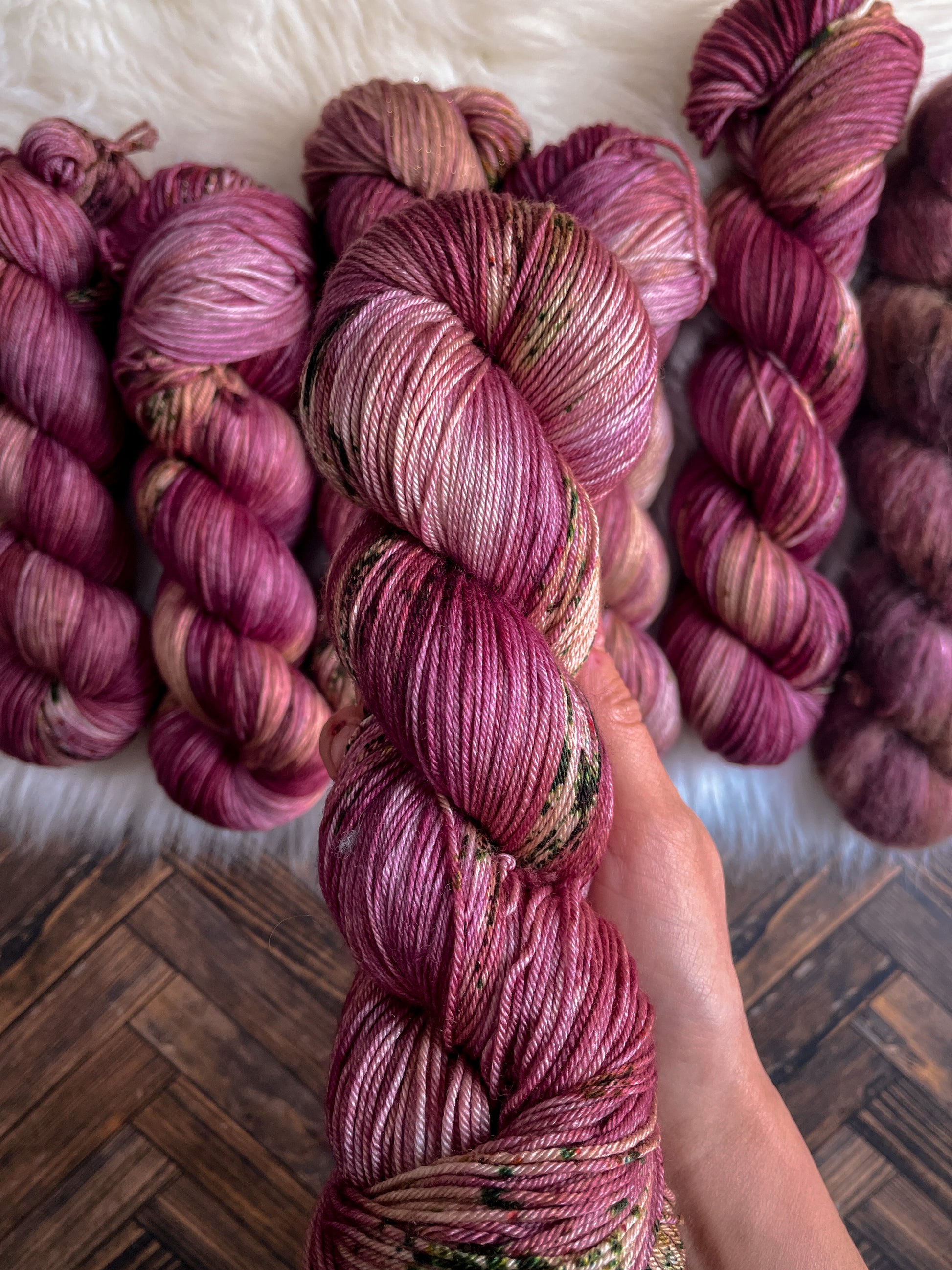 Due to the nature of hand-dyed, speckled yarn and fiber, each item may differ slightly both within and between dyelots. Alternating skeins every couple of rows is recommended when working large projects with multiple skeins of the same colorway. I do my best to capture the true color of the yarn in natural lighting conditions, however colors may vary due to differences in lighting and between screens.