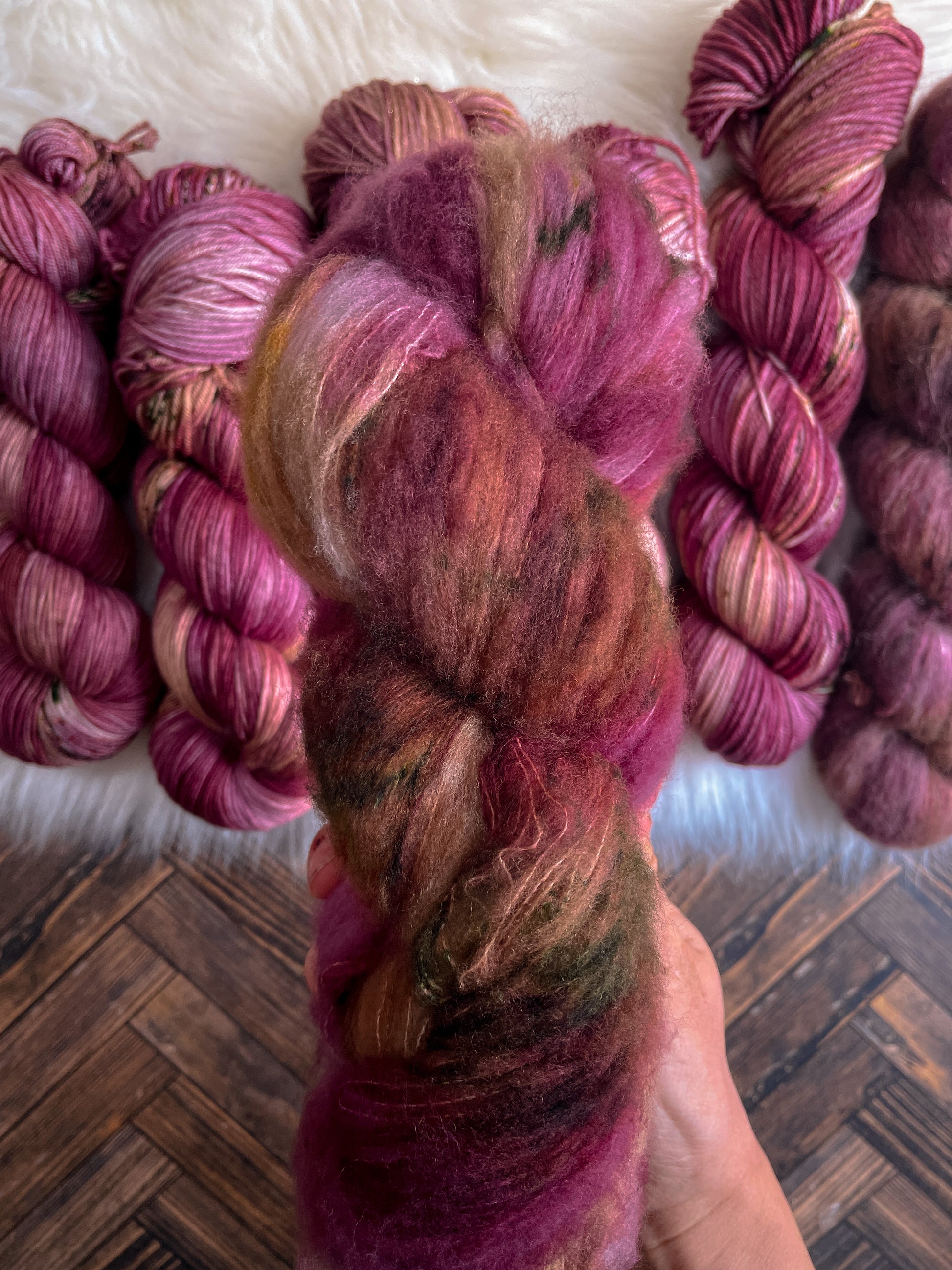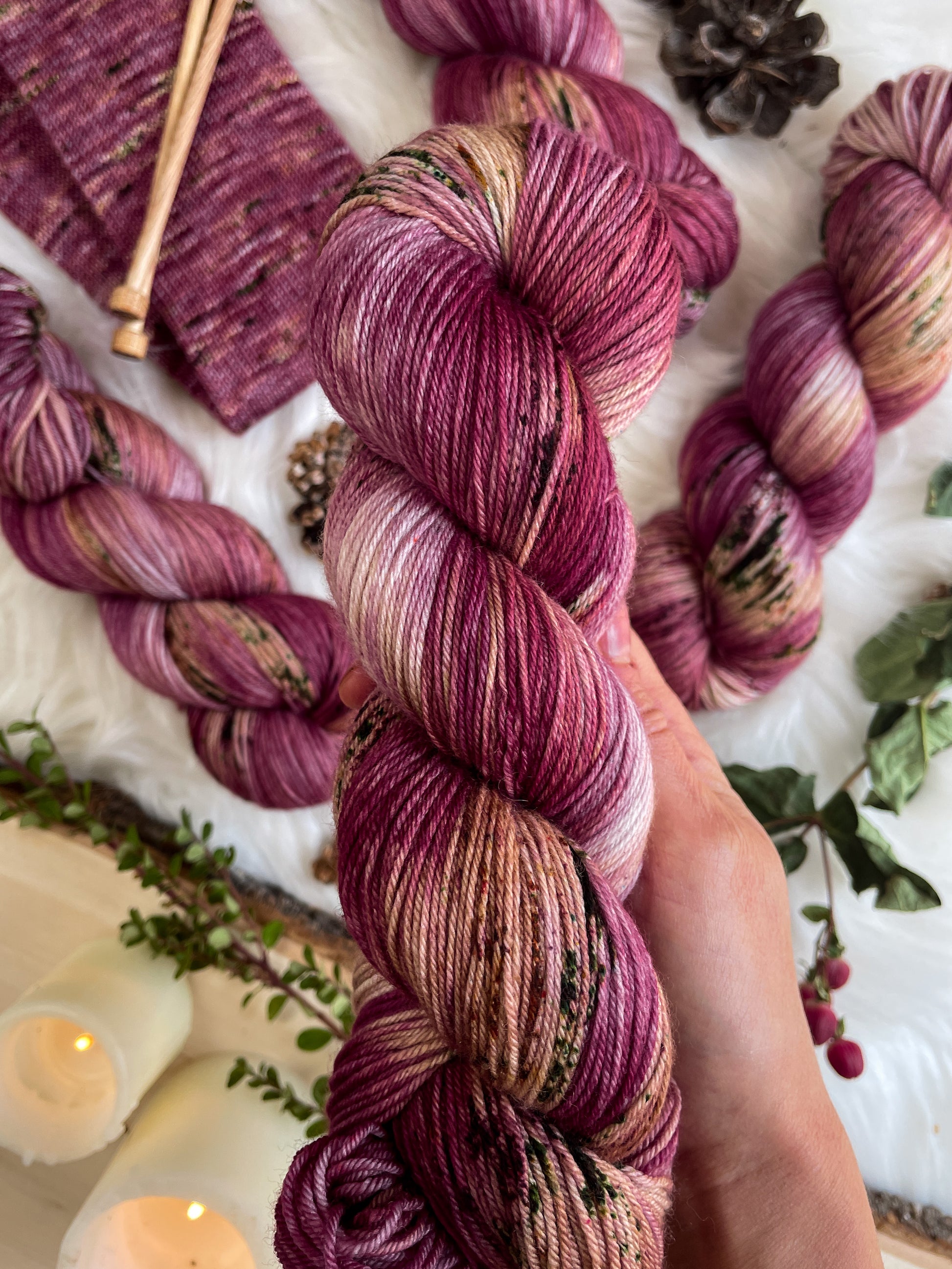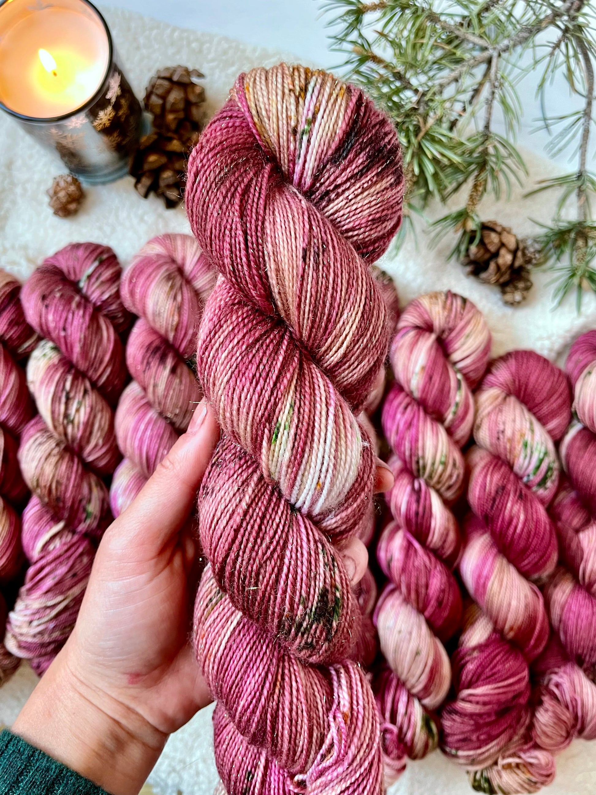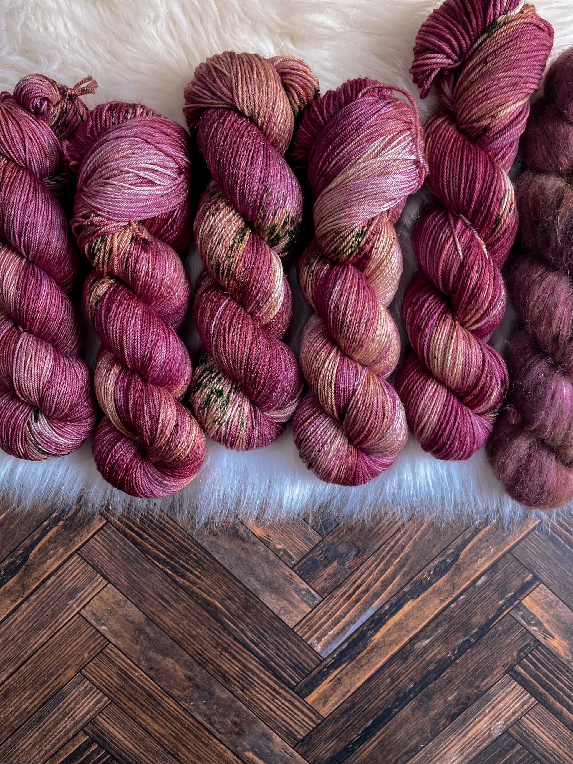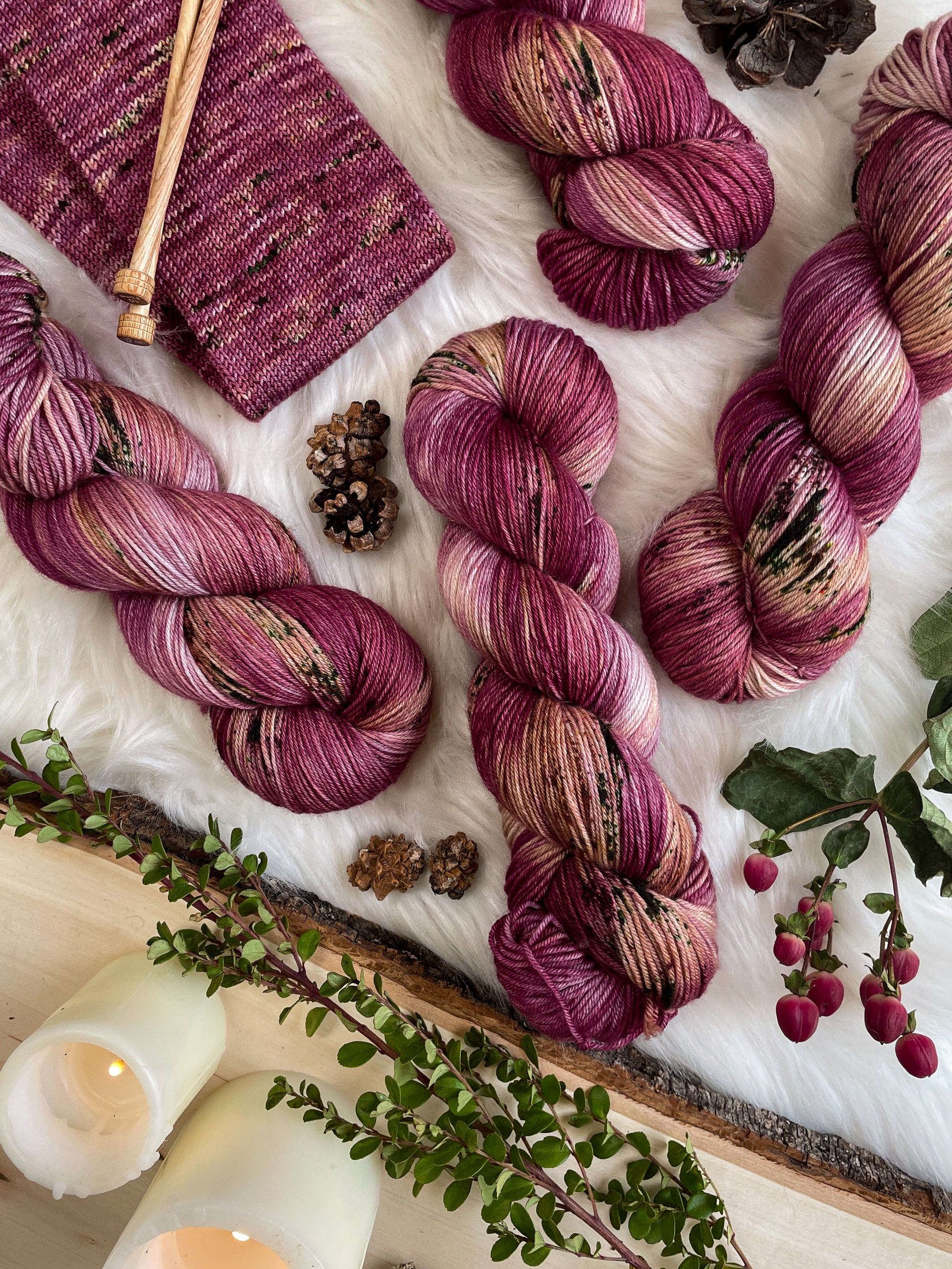 Due to the nature of hand-dyed, speckled yarn and fiber, each item may differ slightly both within and between dyelots. Alternating skeins every couple of rows is recommended when working large projects with multiple skeins of the same colorway. I do my best to capture the true color of the yarn in natural lighting conditions, however colors may vary due to differences in lighting and between screens.