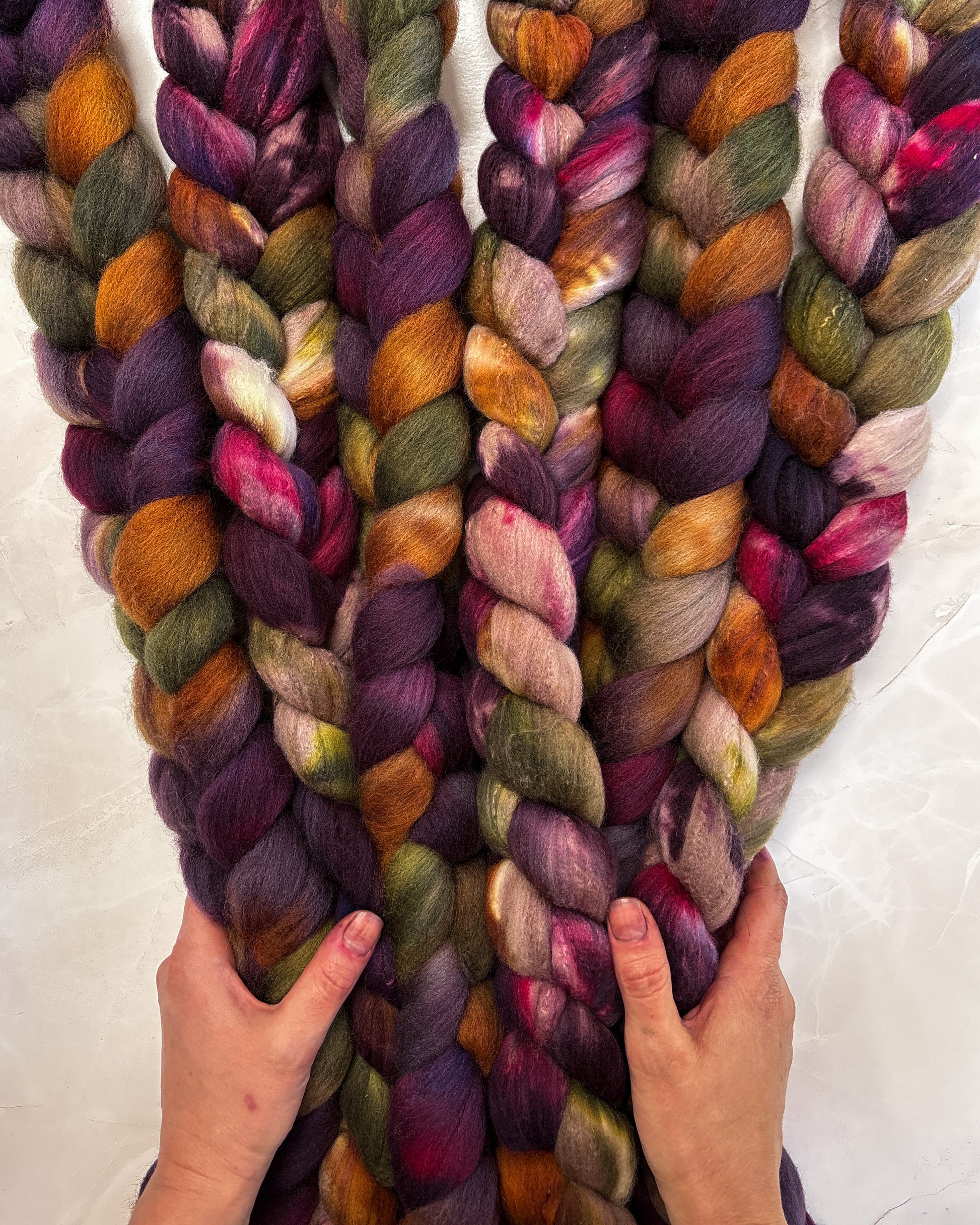 Due to the nature of hand-dyed, speckled yarn and fiber, each item may differ slightly both within and between dyelots. Alternating skeins every couple of rows is recommended when working large projects with multiple skeins of the same colorway. I do my best to capture the true color of the yarn in natural lighting conditions, however colors may vary due to differences in lighting and between screens.