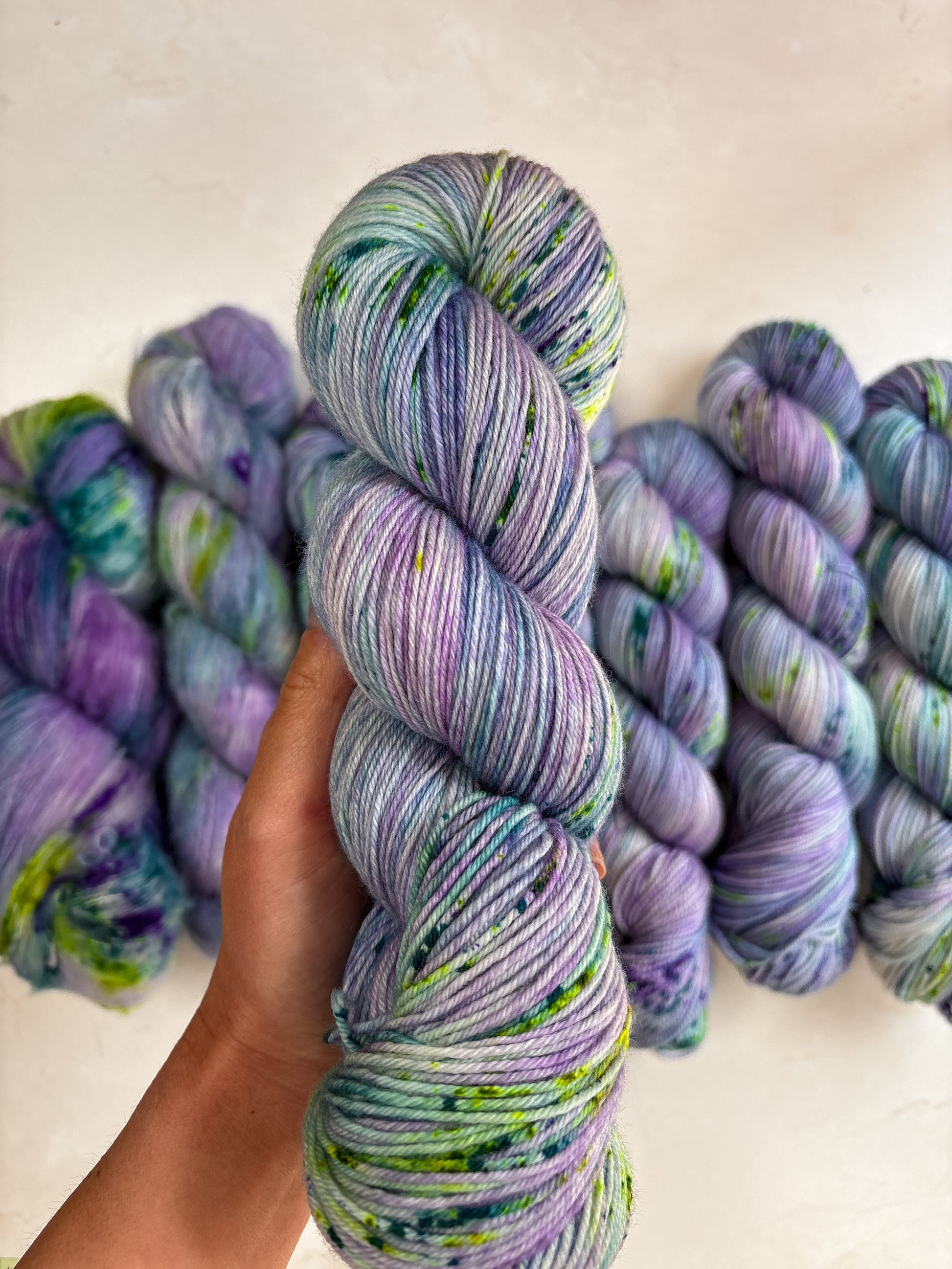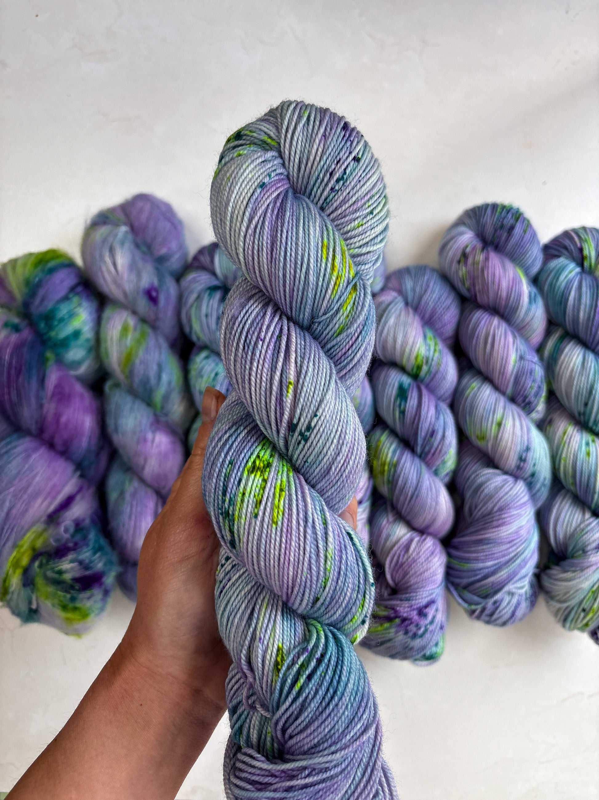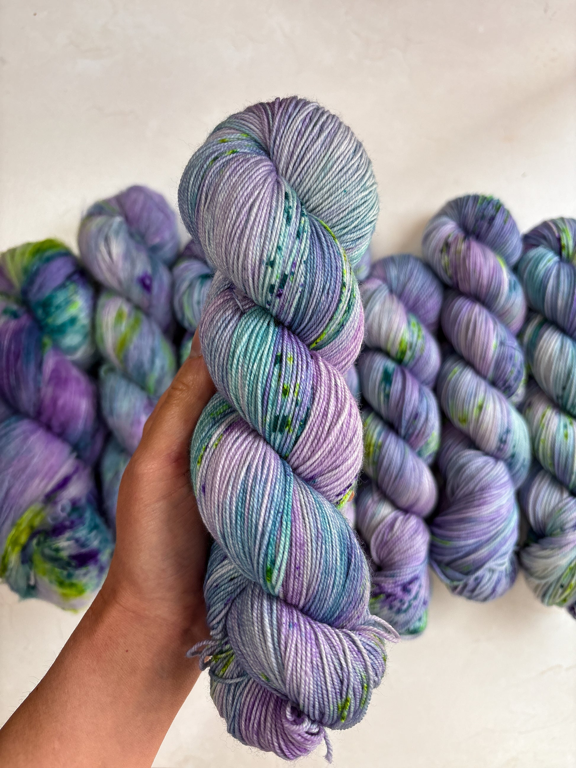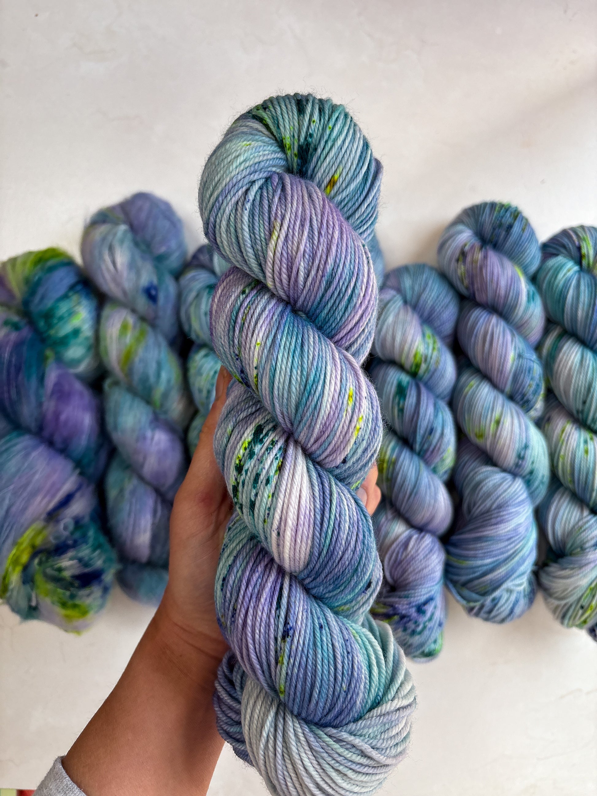 Due to the nature of hand-dyed, speckled yarn and fiber, each item may differ slightly both within and between dyelots. Alternating skeins every couple of rows is recommended when working large projects with multiple skeins of the same colorway. I do my best to capture the true color of the yarn in natural lighting conditions, however colors may vary due to differences in lighting and between screens.