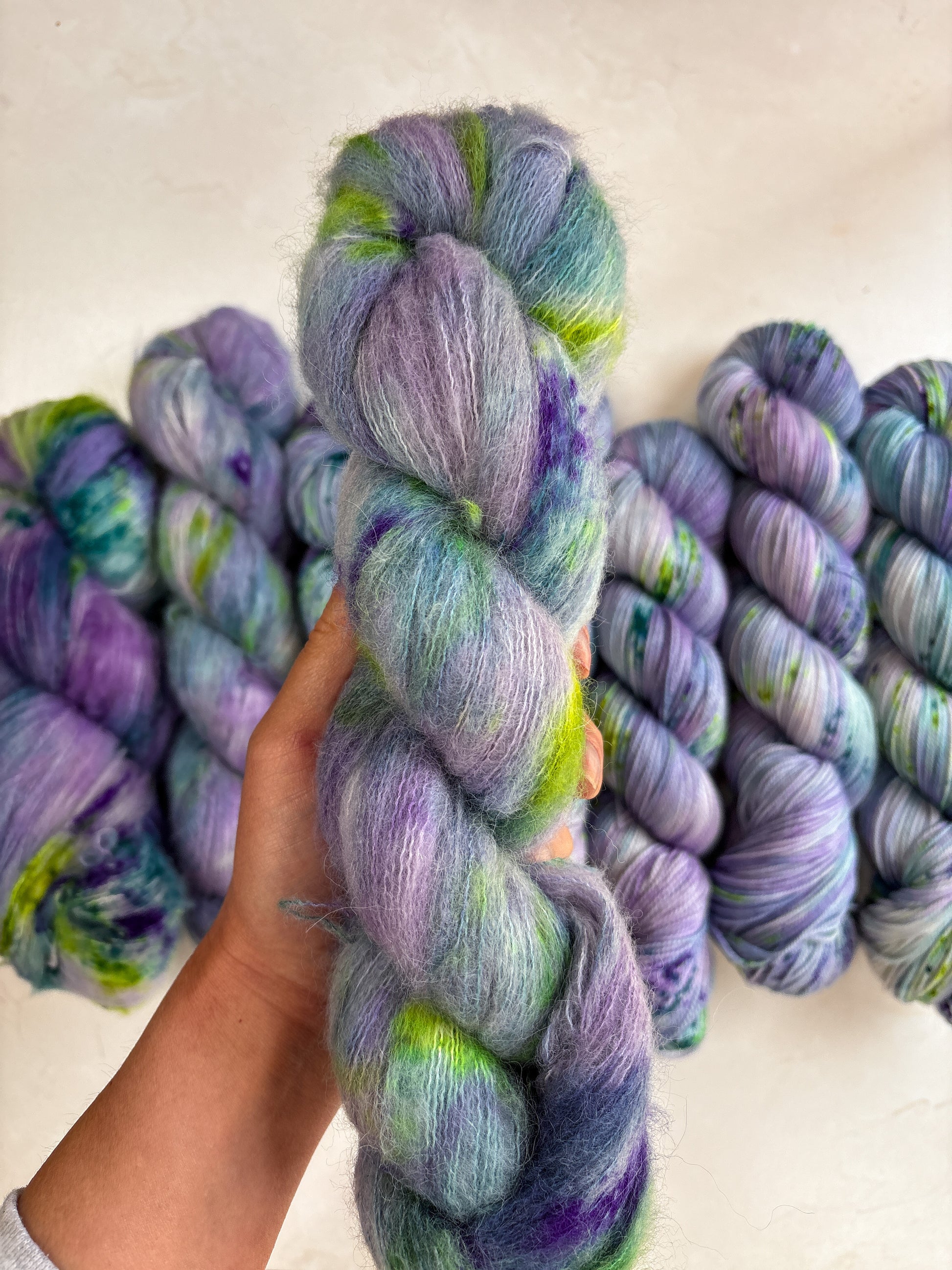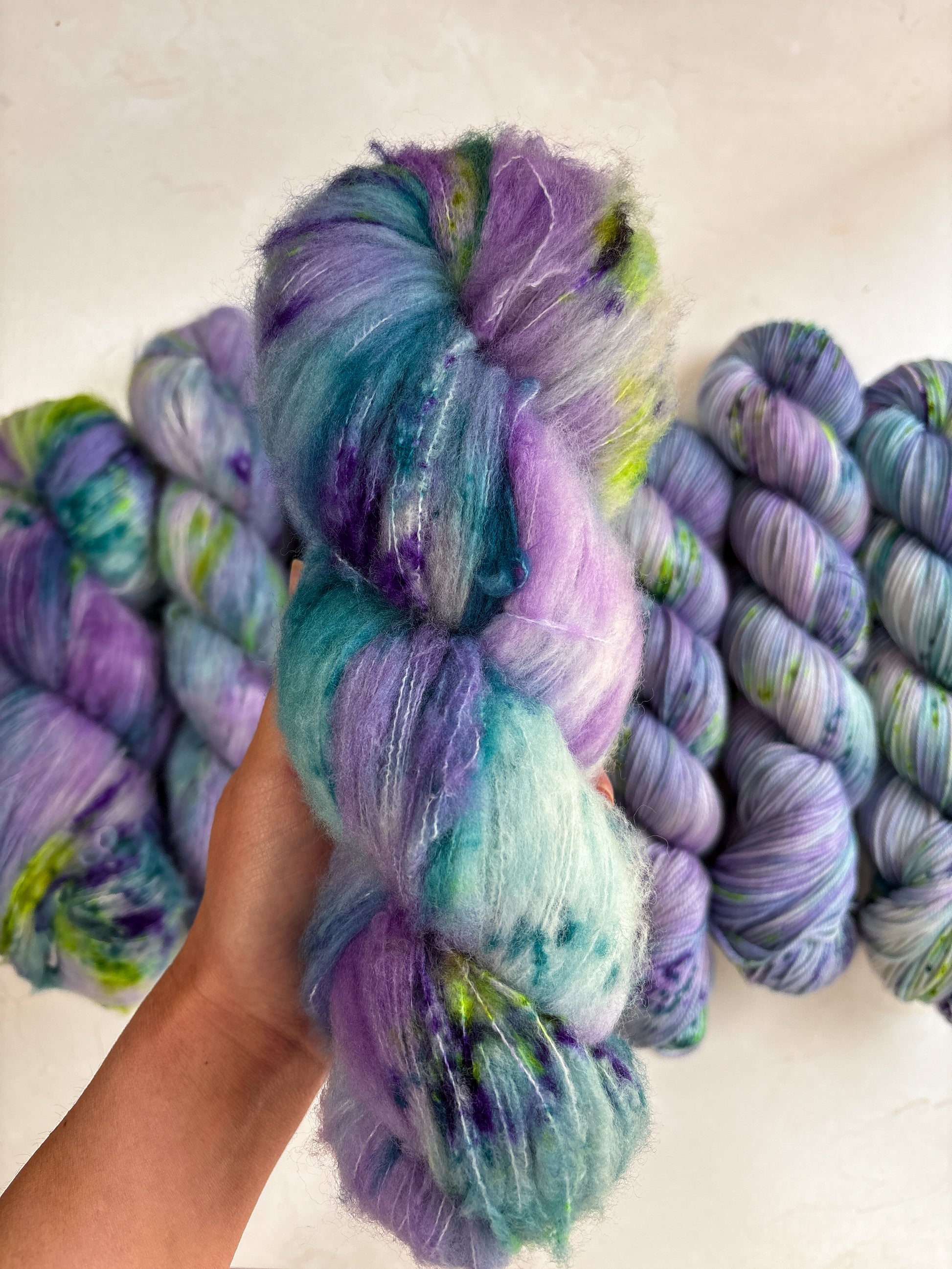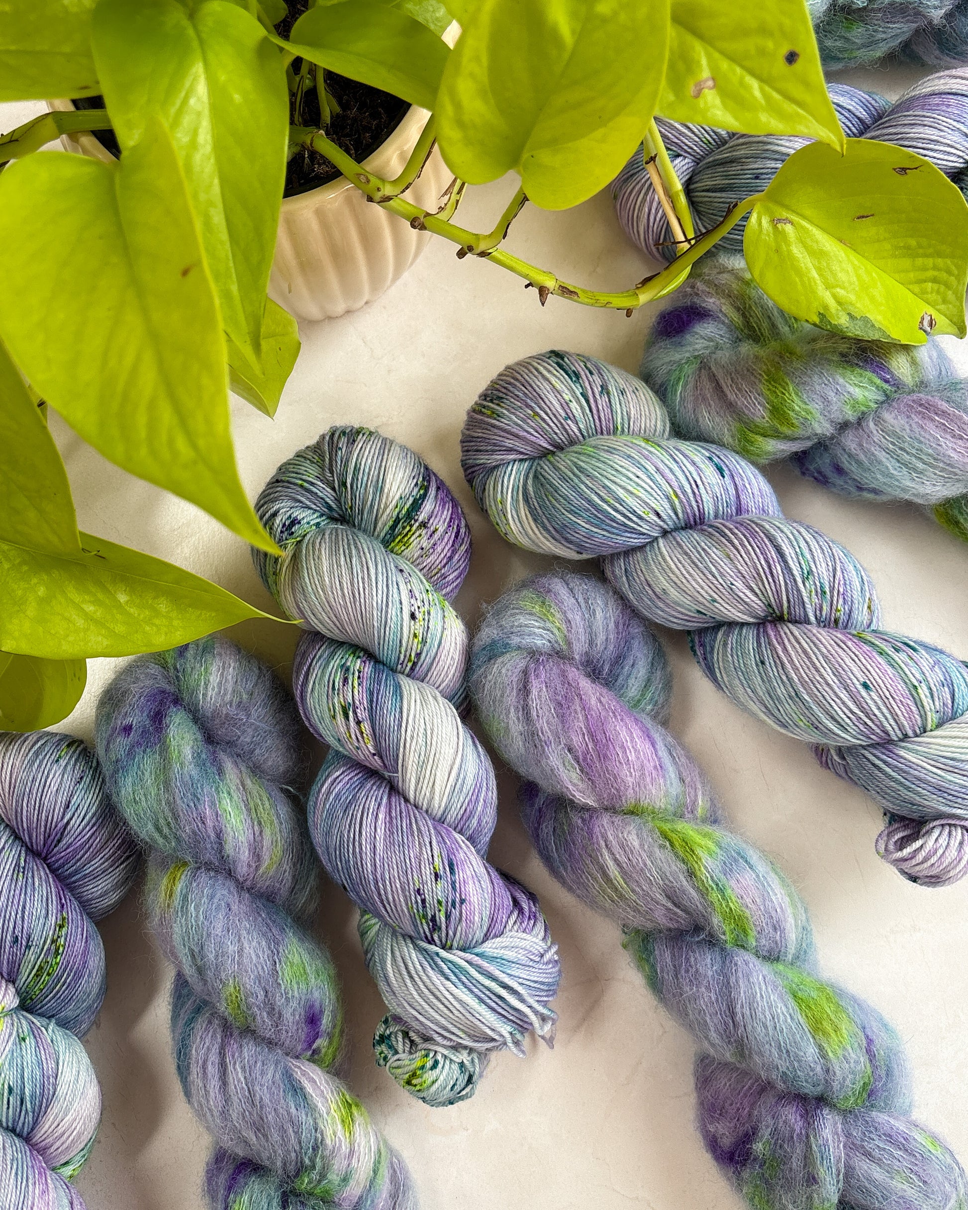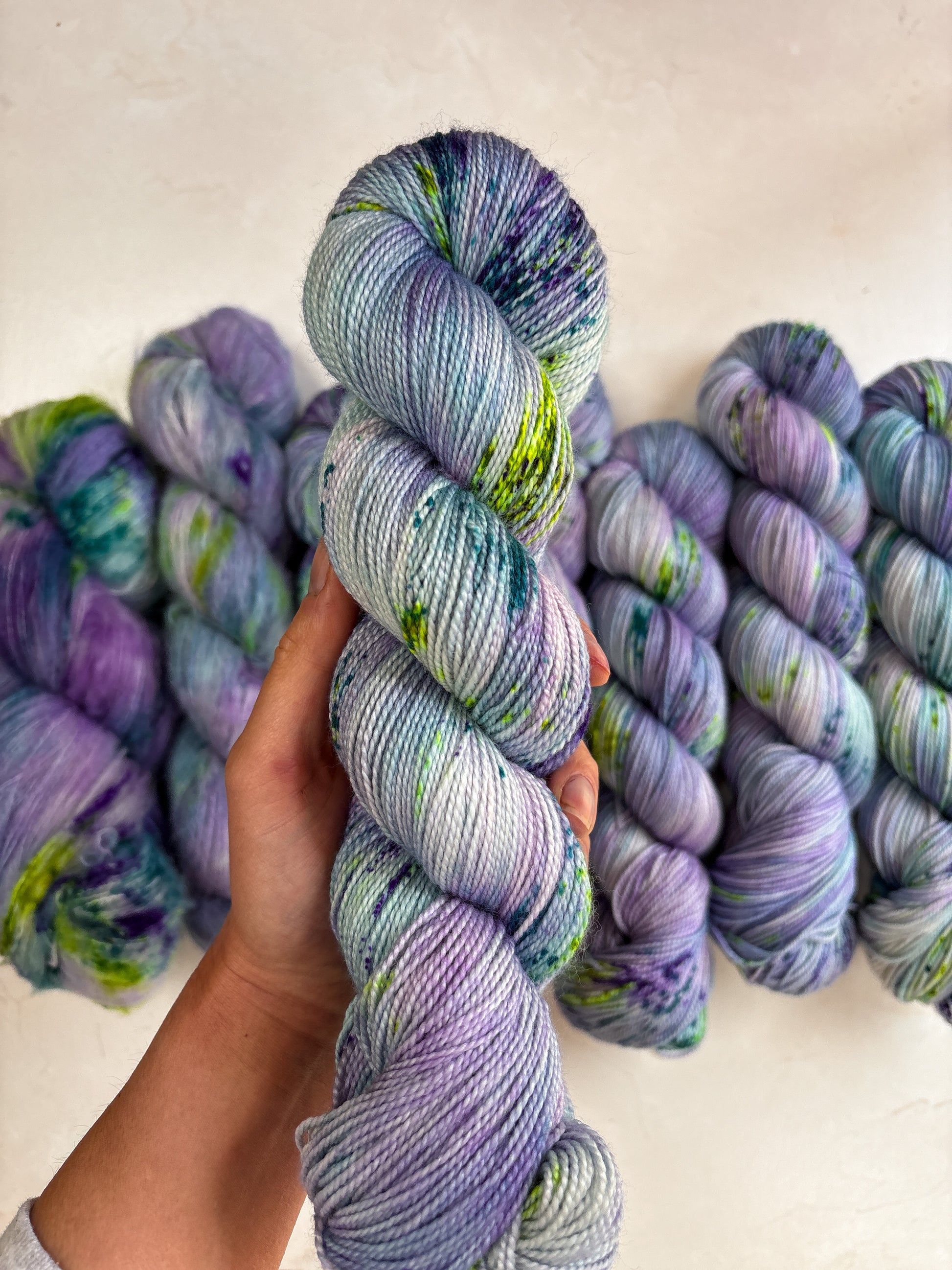 Due to the nature of hand-dyed, speckled yarn and fiber, each item may differ slightly both within and between dyelots. Alternating skeins every couple of rows is recommended when working large projects with multiple skeins of the same colorway. I do my best to capture the true color of the yarn in natural lighting conditions, however colors may vary due to differences in lighting and between screens.