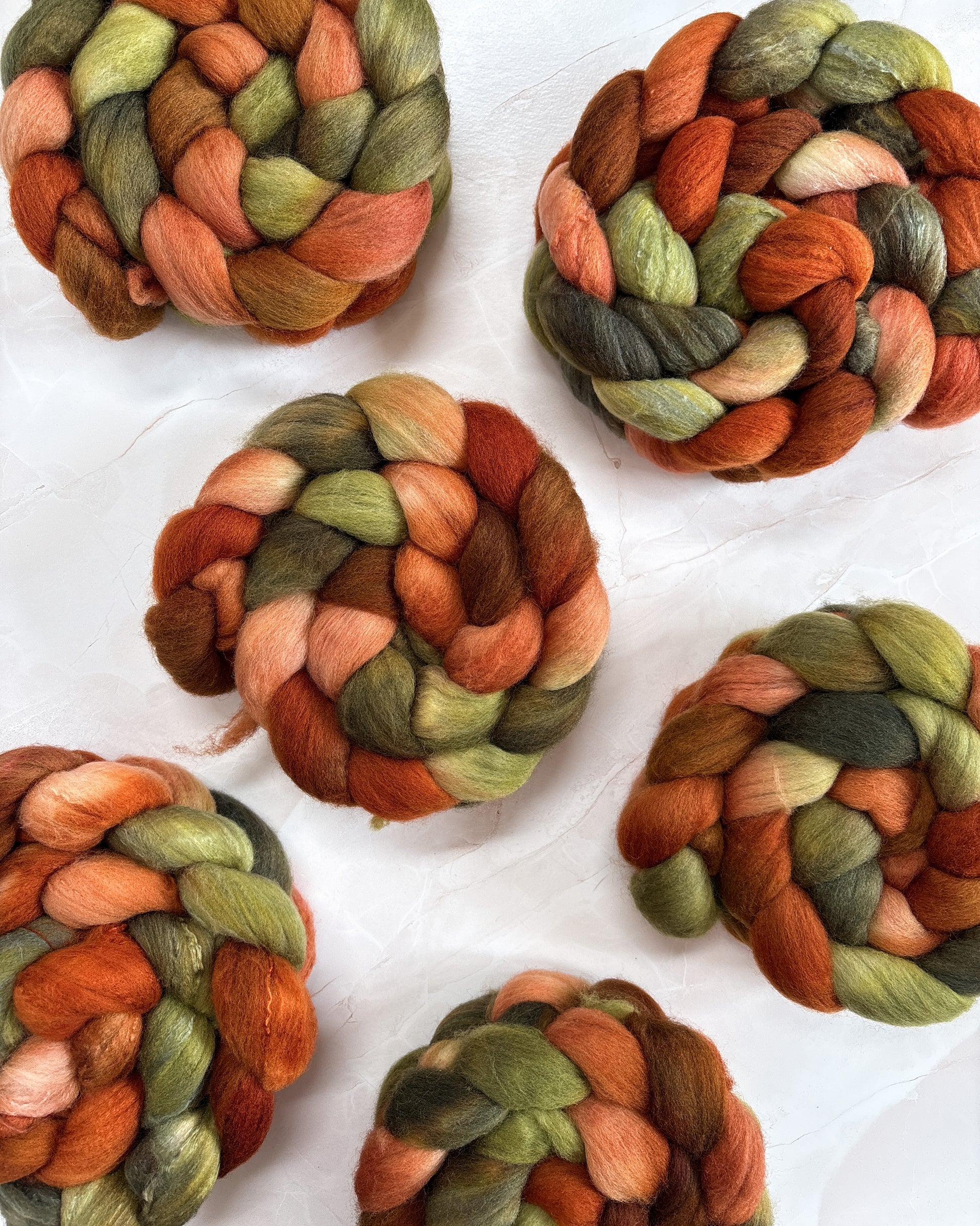 Due to the nature of hand-dyed, speckled yarn and fiber, each item may differ slightly both within and between dyelots. Alternating skeins every couple of rows is recommended when working large projects with multiple skeins of the same colorway. I do my best to capture the true color of the yarn in natural lighting conditions, however colors may vary due to differences in lighting and between screens.
