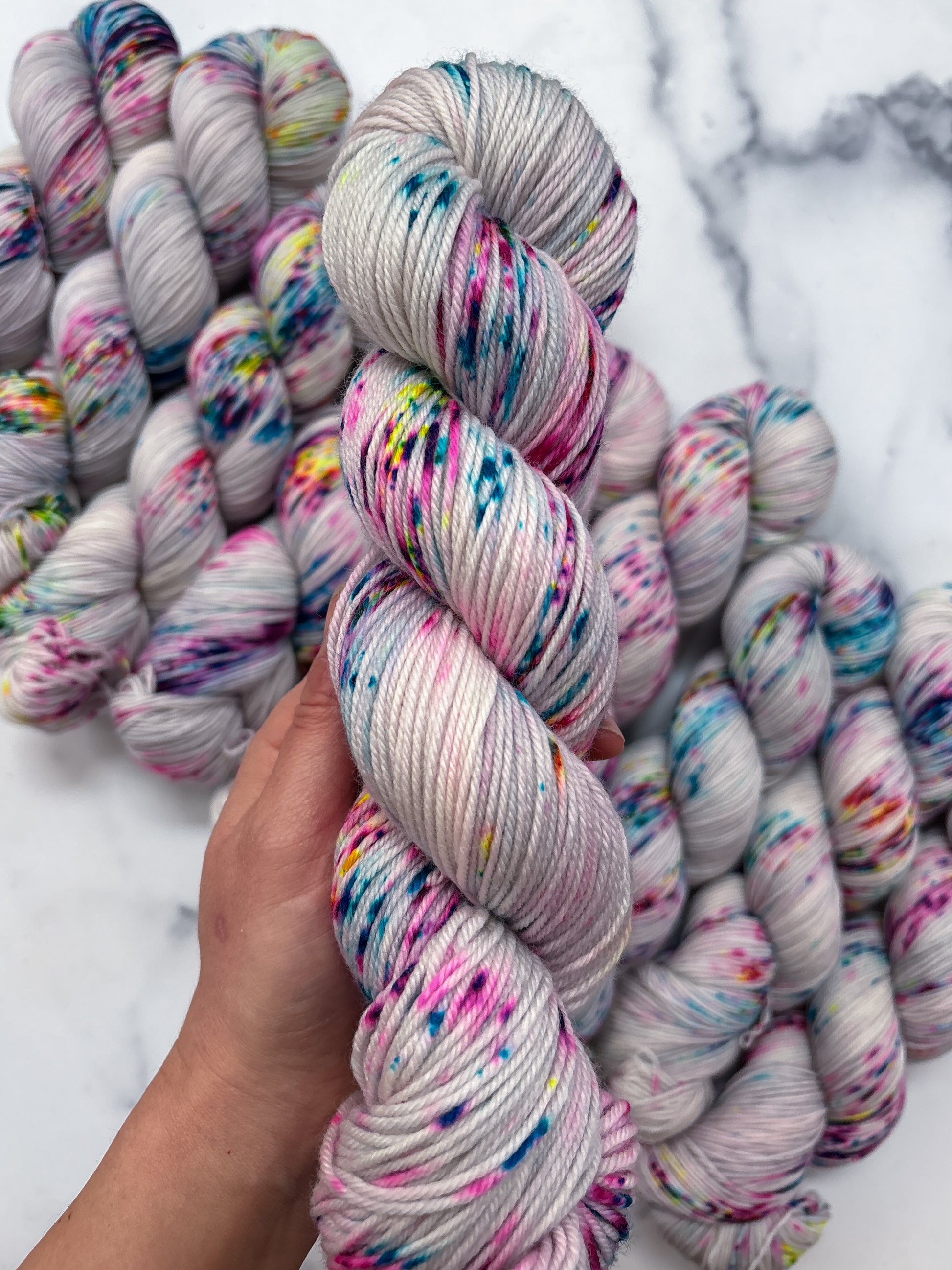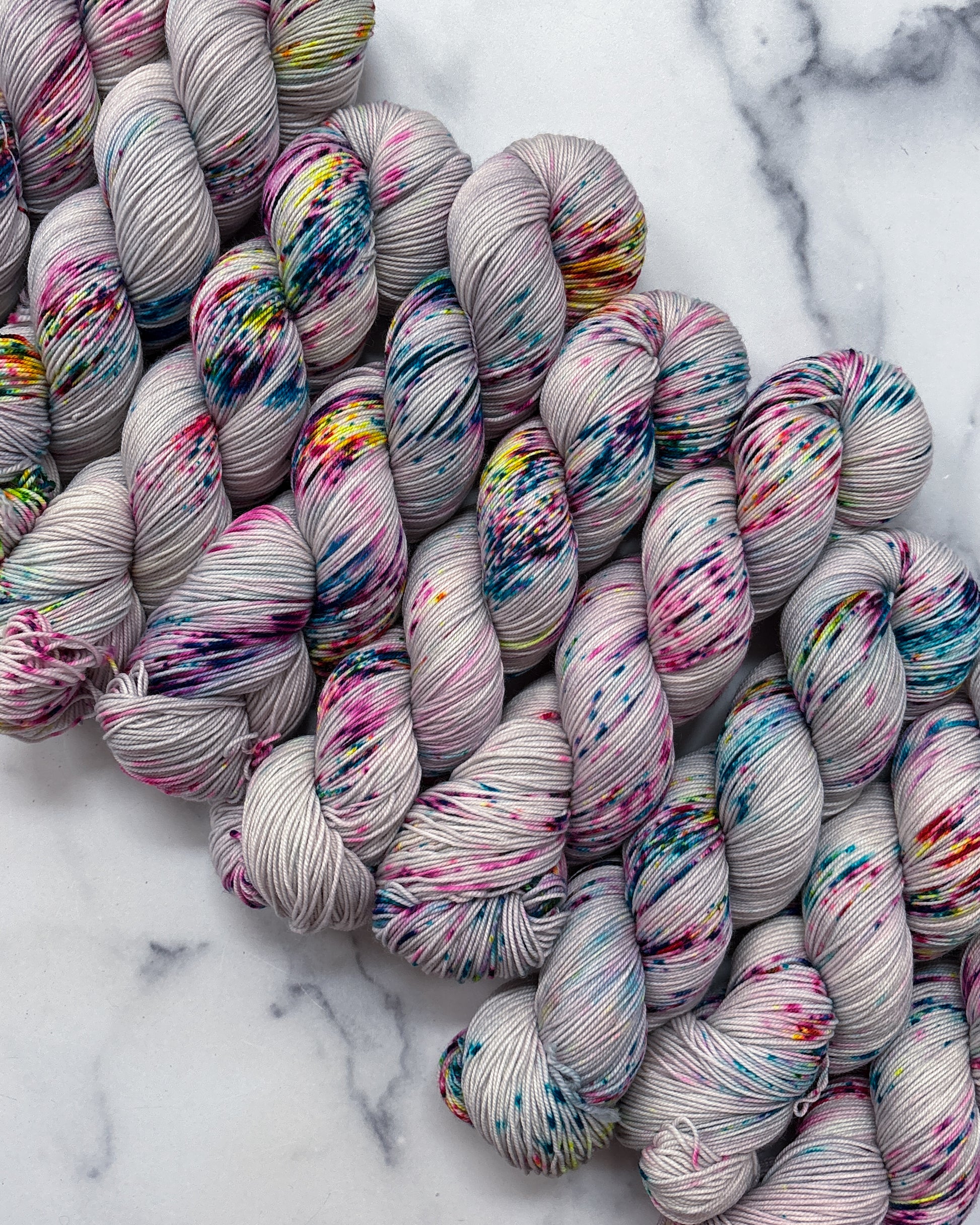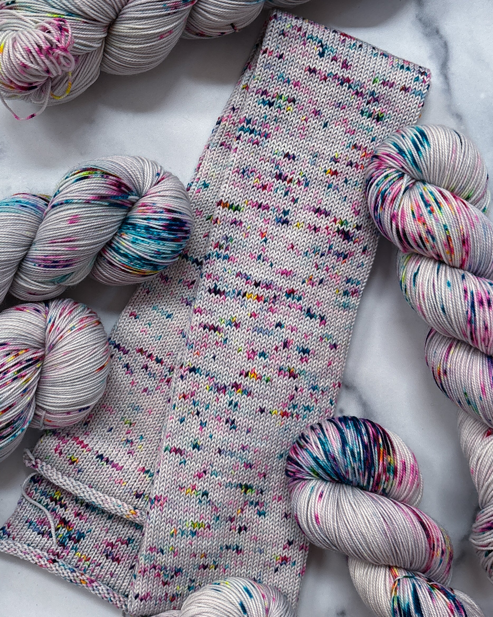 Due to the nature of hand-dyed, speckled yarn and fiber, each item may differ slightly both within and between dyelots. Alternating skeins every couple of rows is recommended when working large projects with multiple skeins of the same colorway. I do my best to capture the true color of the yarn in natural lighting conditions, however colors may vary due to differences in lighting and between screens.
