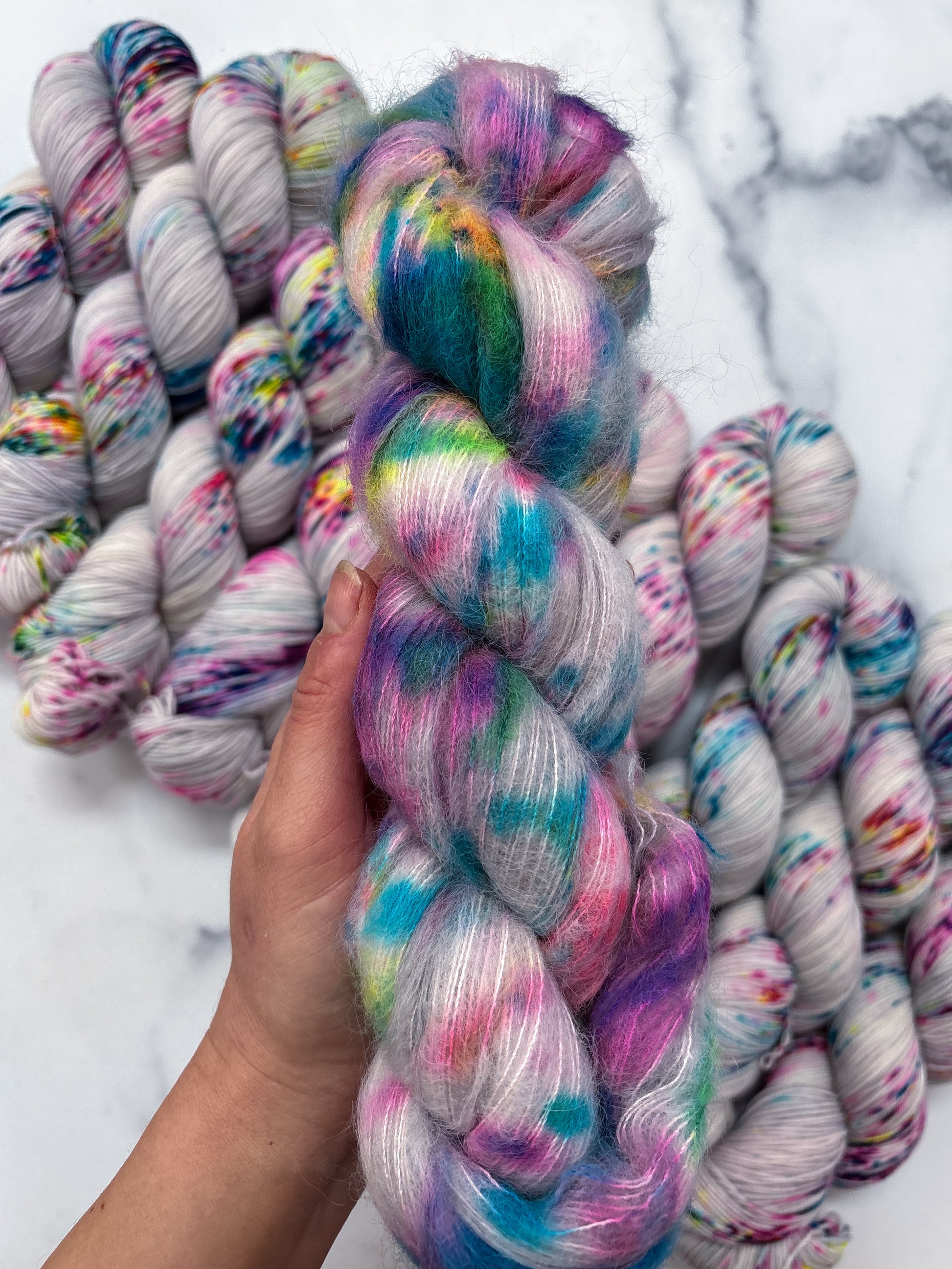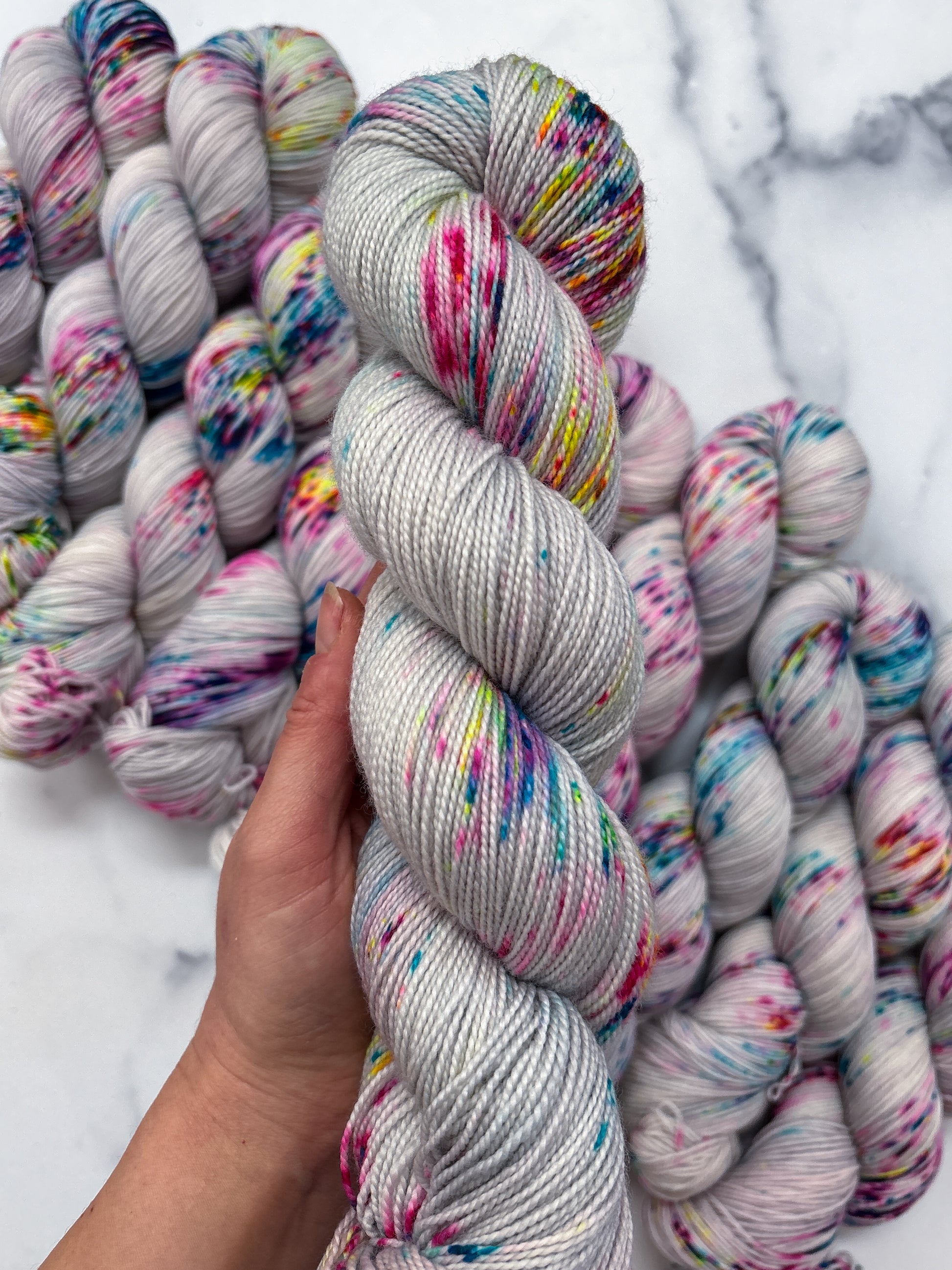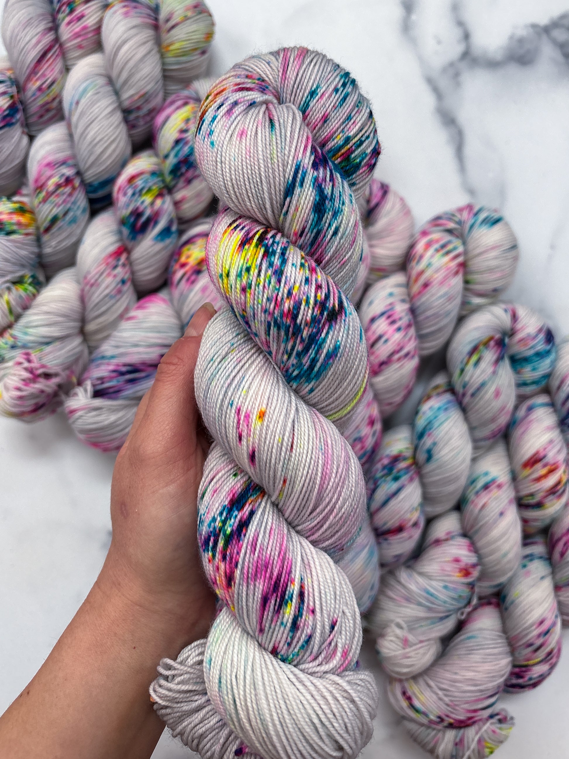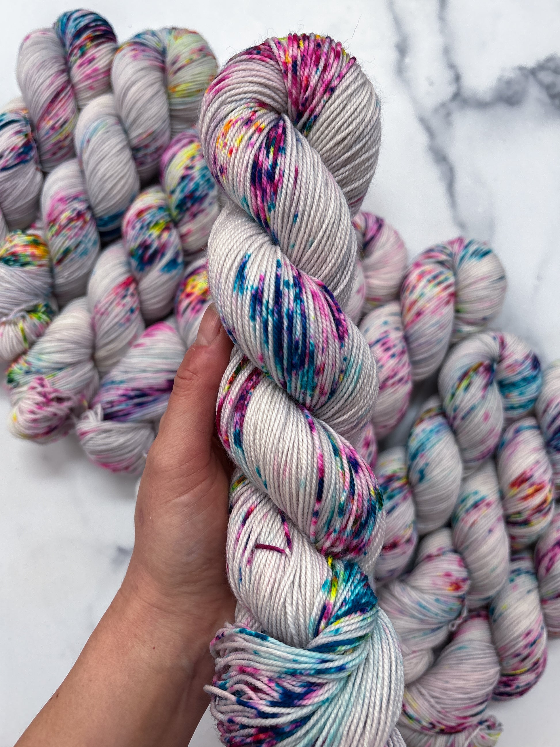 Due to the nature of hand-dyed, speckled yarn and fiber, each item may differ slightly both within and between dyelots. Alternating skeins every couple of rows is recommended when working large projects with multiple skeins of the same colorway. I do my best to capture the true color of the yarn in natural lighting conditions, however colors may vary due to differences in lighting and between screens.