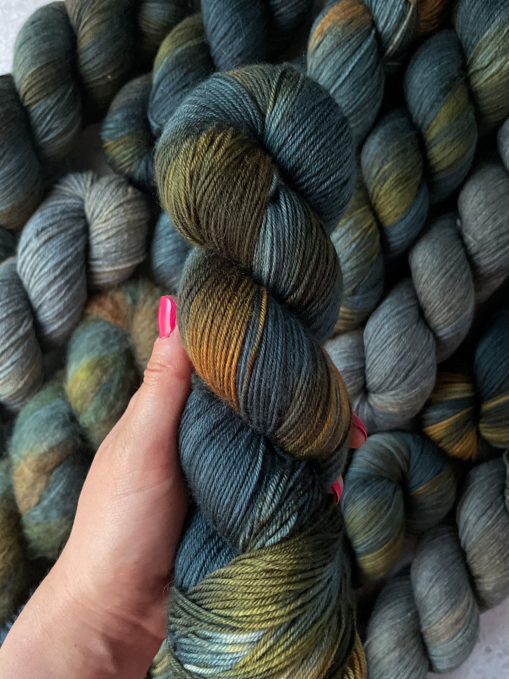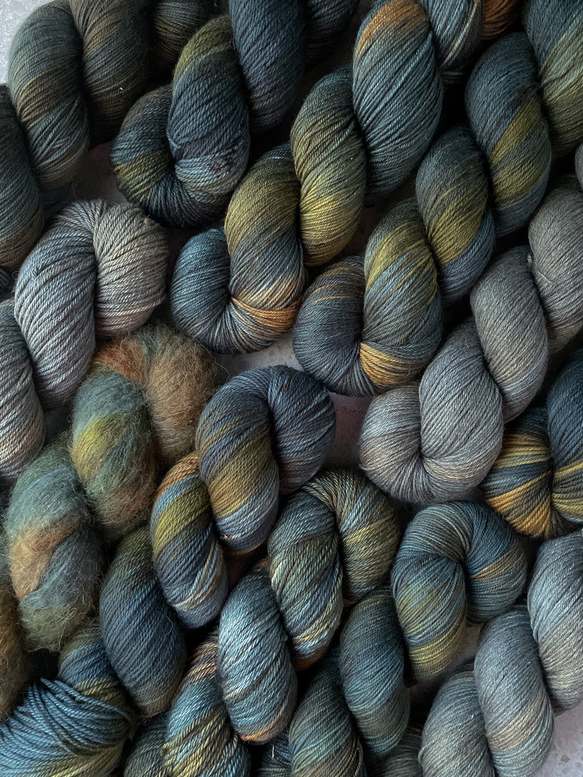 Due to the nature of hand-dyed, speckled yarn and fiber, each item may differ slightly both within and between dyelots. Alternating skeins every couple of rows is recommended when working large projects with multiple skeins of the same colorway. I do my best to capture the true color of the yarn in natural lighting conditions, however colors may vary due to differences in lighting and between screens.