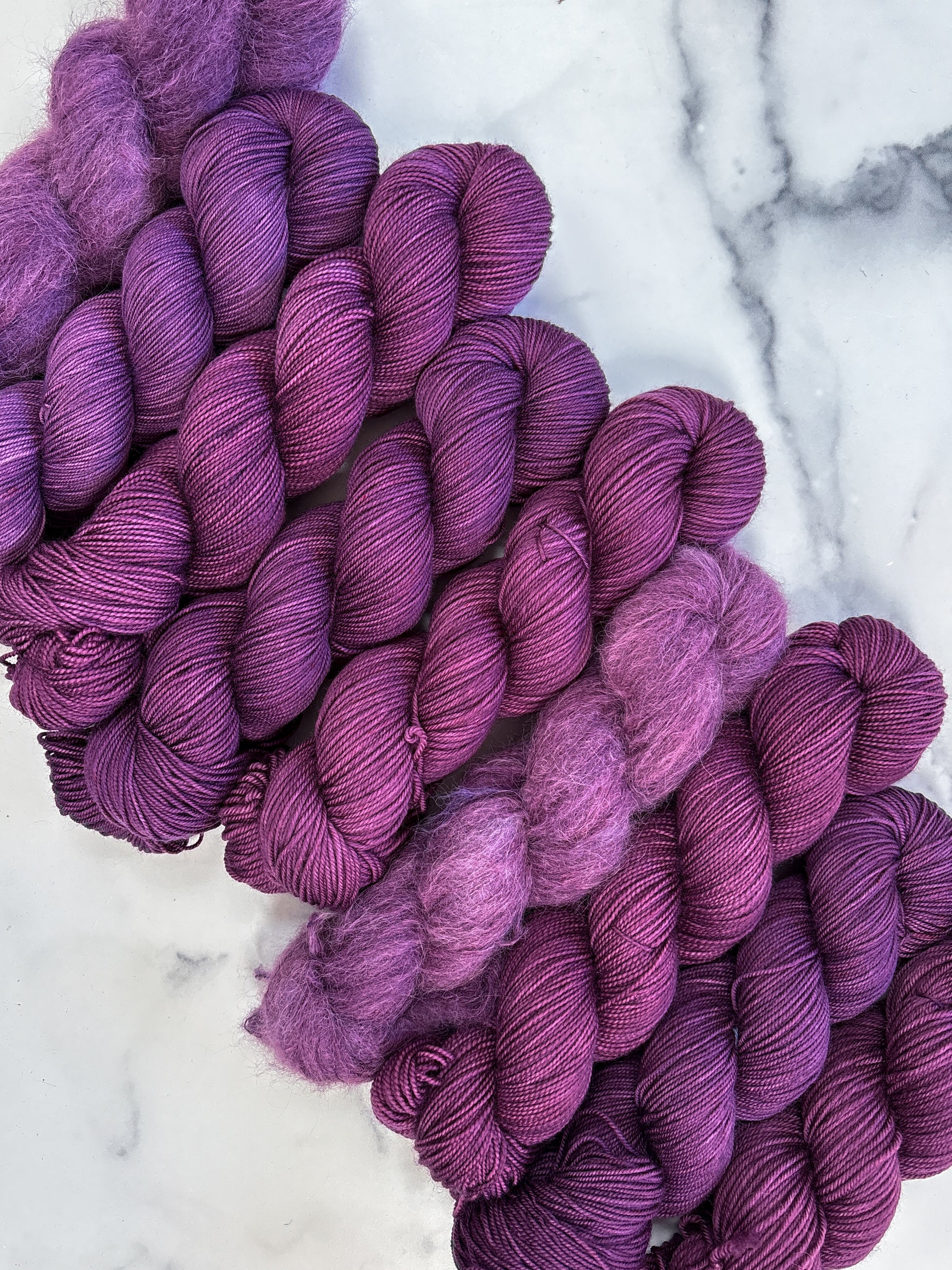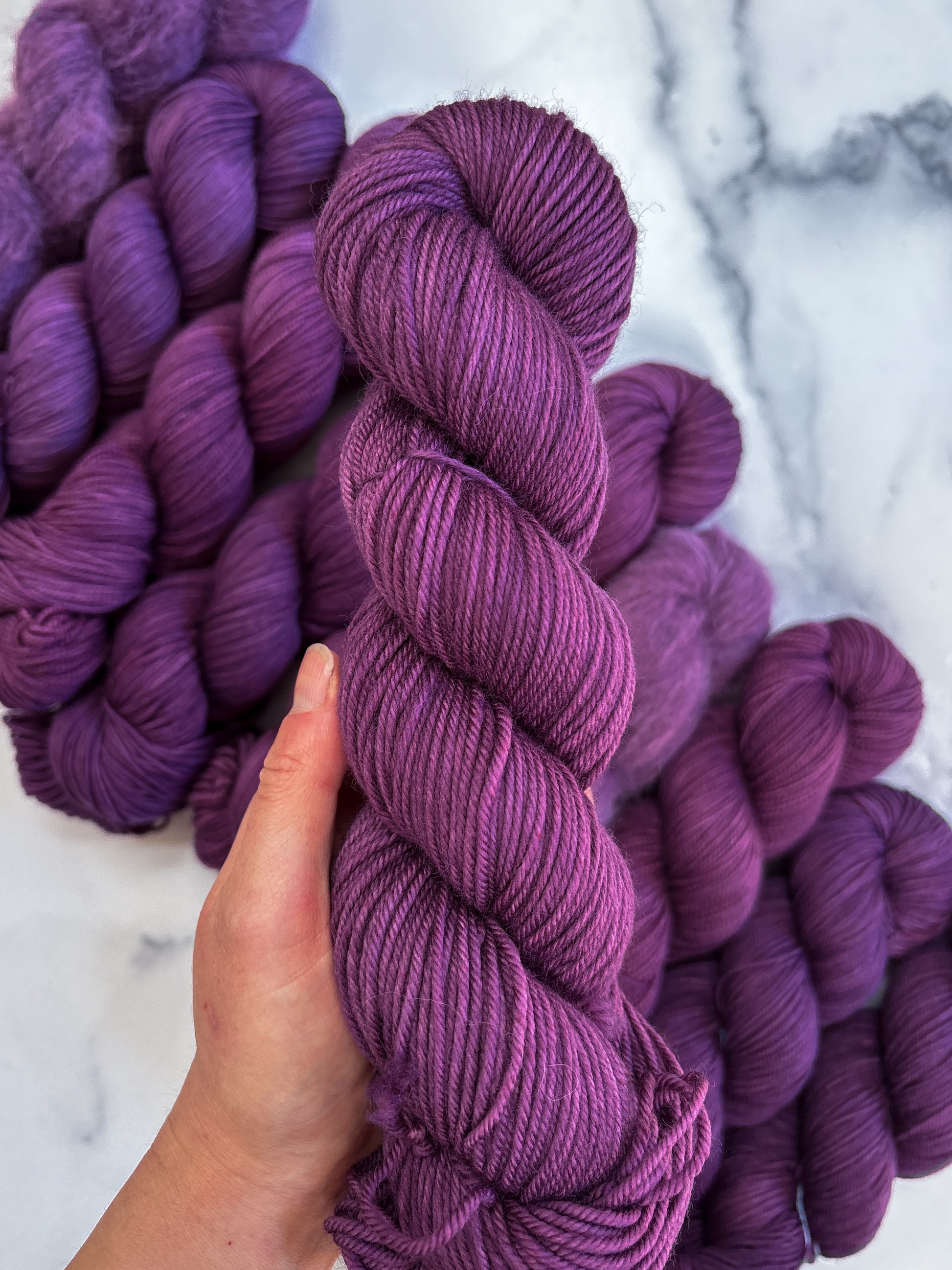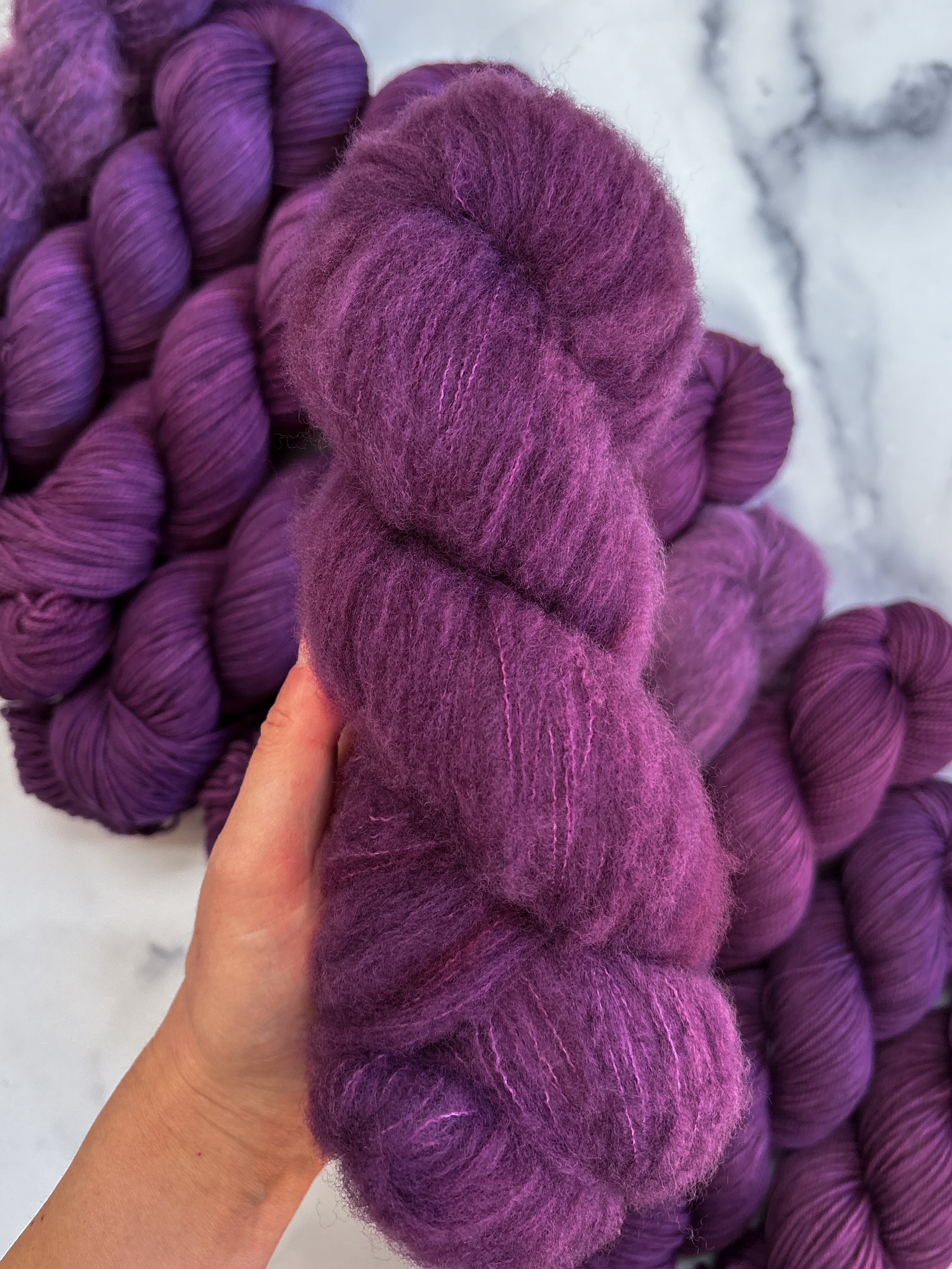 Due to the nature of hand-dyed, speckled yarn and fiber, each skein may differ slightly both within and between skeins. Alternating skeins is highly recommended, especially when working larger projects with multiple skeins of the same colorway.